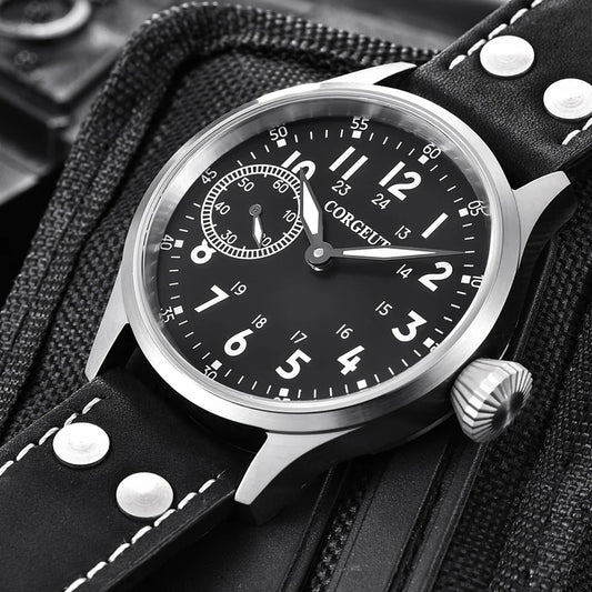 Corgeut 6023 Sub Second Pilot St3600 Manual Mechanical Watch 44MM 5ATM Sapphire Luminious glass back