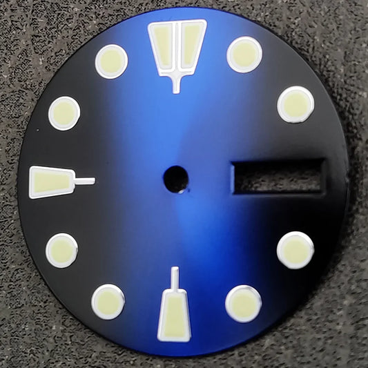 28.5mm Watch Dial Black Blue Gradient Dual Calendar Date Watch Faces with Green Luminous Watch Accessories for NH36 Movement