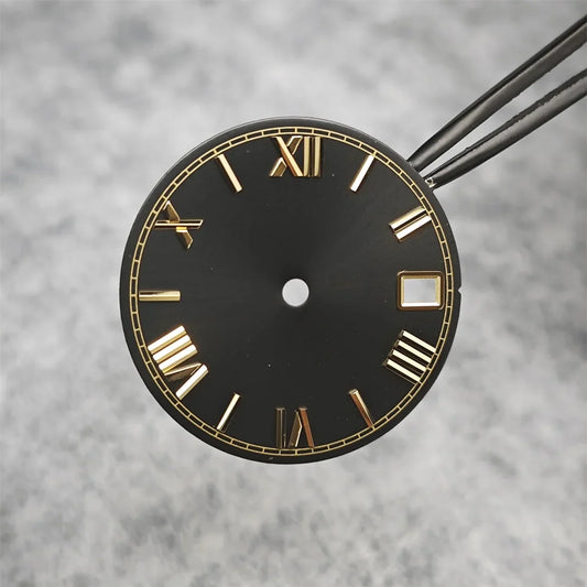 28.5mm Roman Scale Watch Dial Real Nail Modified Replacement Watch Faces with Single Calendar Window for NH35/NH36/4R Movement