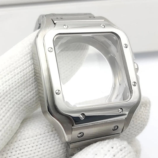 Square Watch Case High quality 38mm NH35 case 316L polished stainless steel case kit for Cartier Santos square case fits NH35/36/ 4R35/36 movement