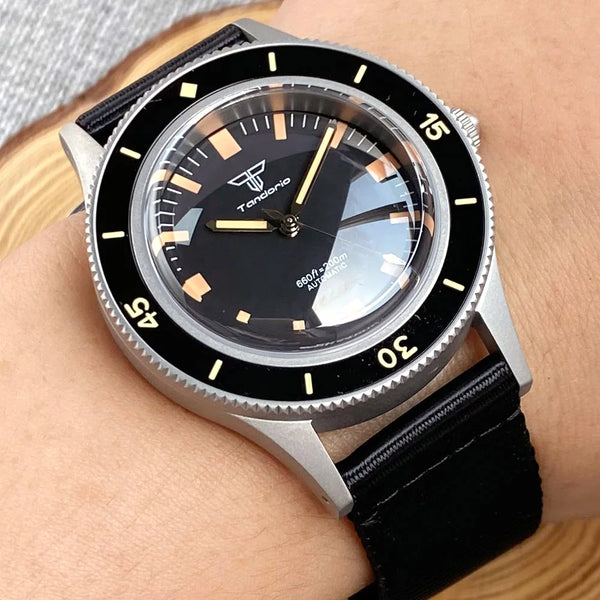 The Tandorio Fifty FATHOMS Diver TD223 is a top-of-the-line 20bar NH35 PT5000 dive watch. Featuring a durable sapphire crystal ,full bezel lume and measuring 40mm, this watch is perfect for any underwater adventure. With expert craftsmanship and advanced technology, you can trust the Tandorio for all your diving needs.