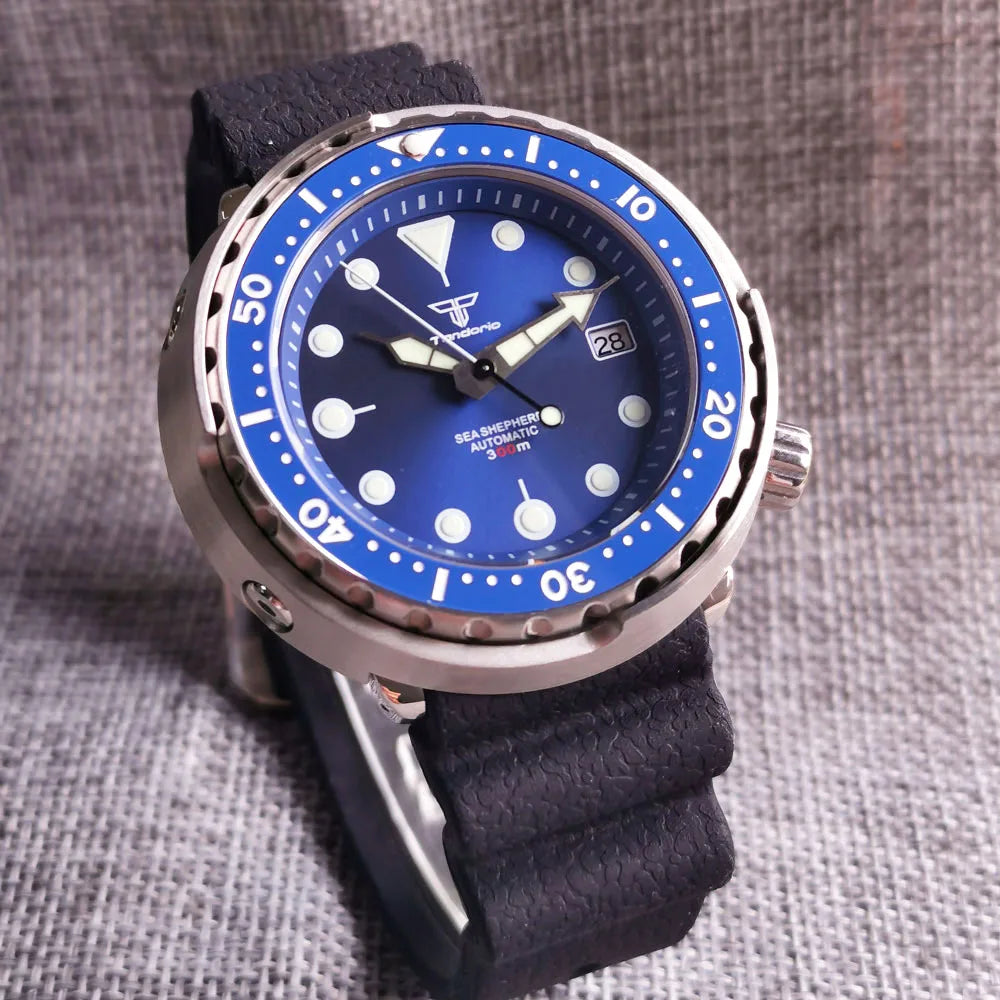 The Tandorio Tuna Watch is the perfect blend of functionality and style. At 46.5mm, this watch boasts a Super Luminous Sapphire dial, NH35A automatic movement, and 20bar water resistance. The rotating bezel and rubber strap make this watch ideal for diving adventures. Don't miss out on this 200M waterproof timepiece.