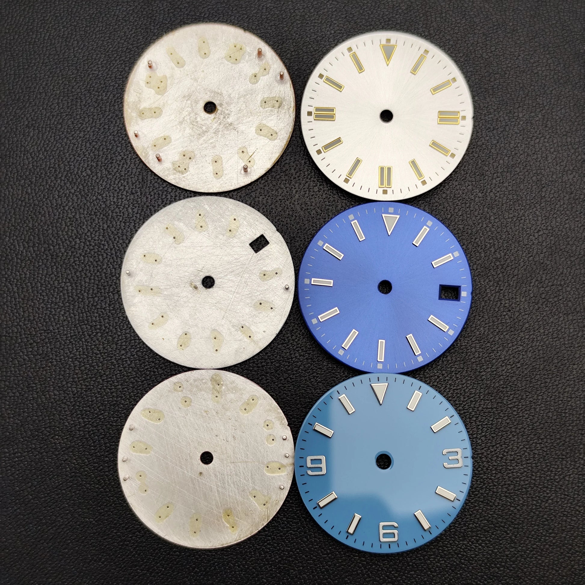 28.5mm single/no calendar blue-green illuminated dial with hands, suitable for NH35/2815/2836/2824 movement watch accessories