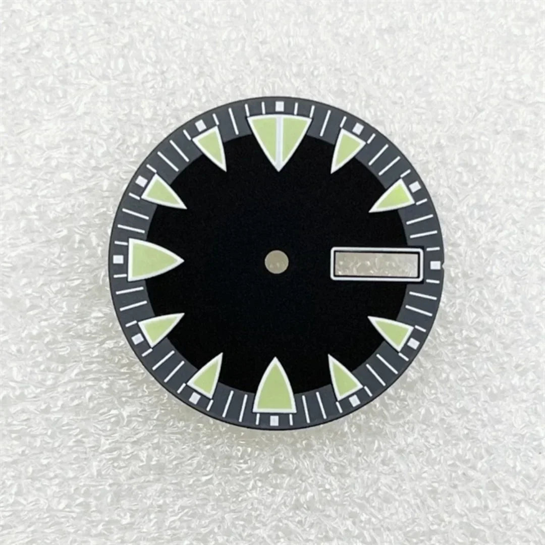28.5mm Green Luminous NH36 Watch Dial Triangular Scale Dial Mechanical Watch Face for NH36A Movement Dive Watch Repair Parts
