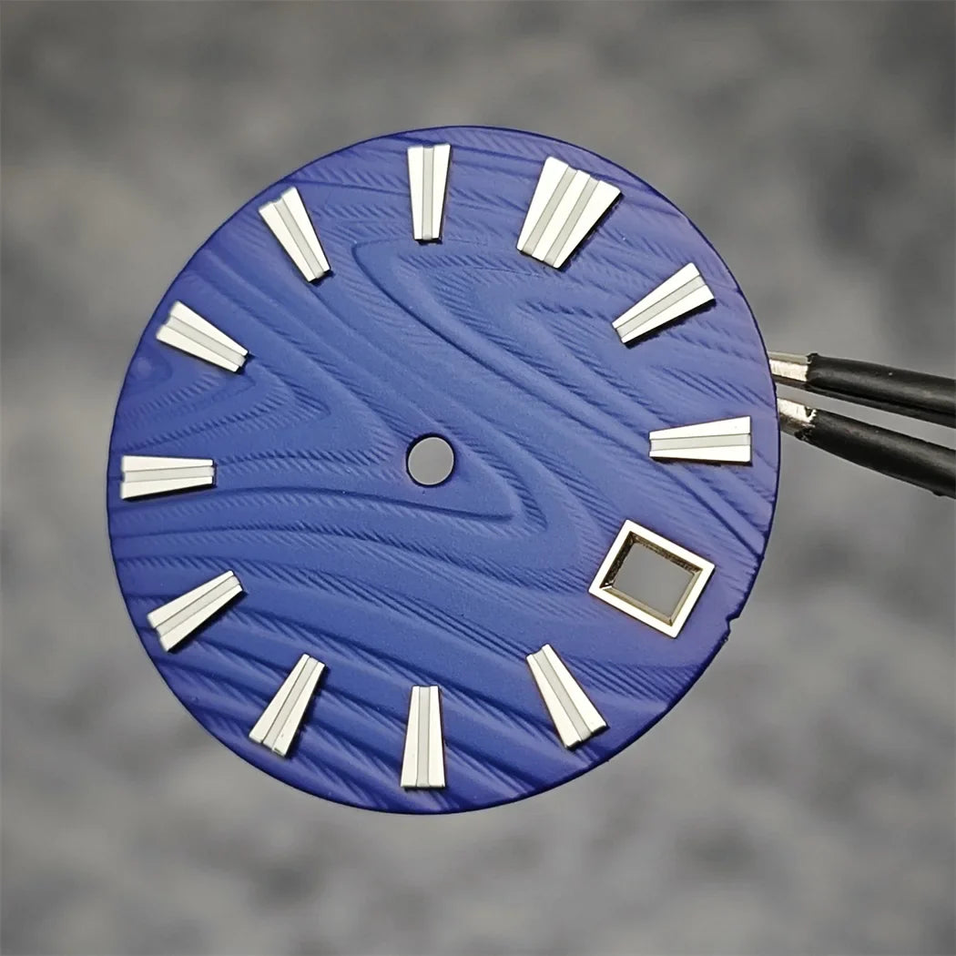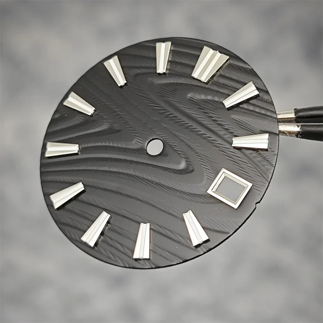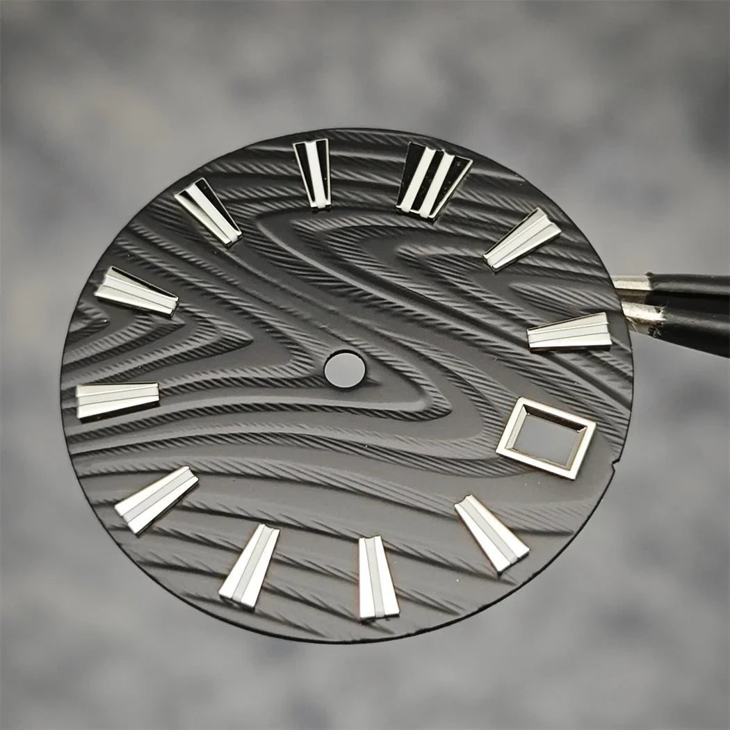 28.5mm Green Luminous Watch Dial Wood Texture Watch Faces Replace Accessories for SKX007 NH35/NH36/4R/7S Movement Watch Parts