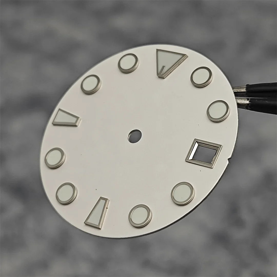 Upgrade your watch with our 28.5MM New NH35 Dial. Featuring a vibrant green luminous face, this dial is compatible with NH35 and NH36 mechanical movement watches. The matte texture adds a sleek touch to your timepiece while providing easy readability in any lighting. Perfect for watch enthusiasts and repair shops.