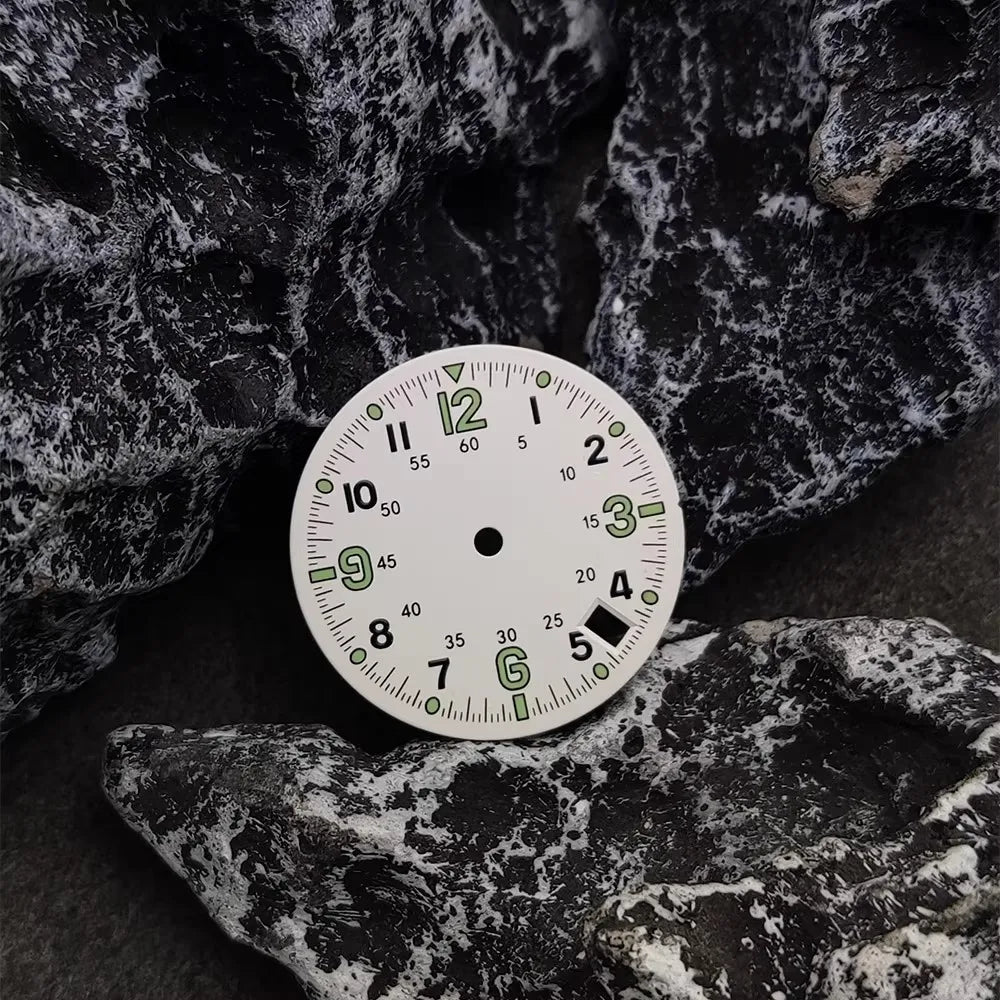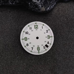 This 28.5mm NH35 watch dial features a double digital circle design with green luminous markers for excellent readability in low light. Designed for men's watches, it is ideal for modifications, custom builds, or replacement projects. Compatible with NH35 automatic movements for easy installation.