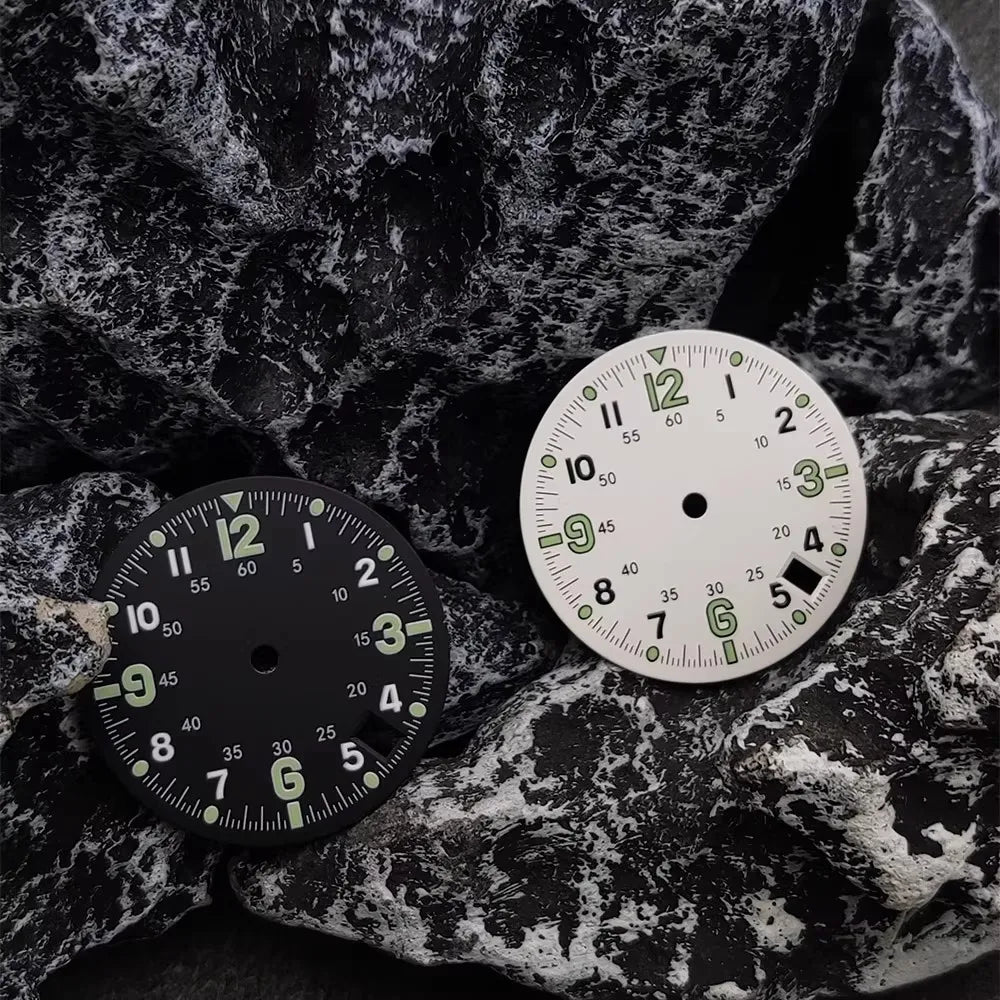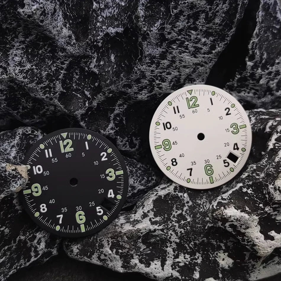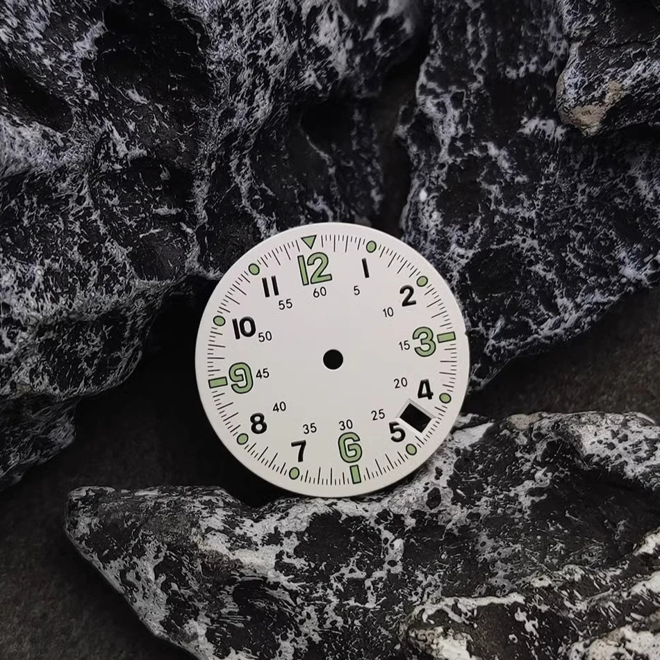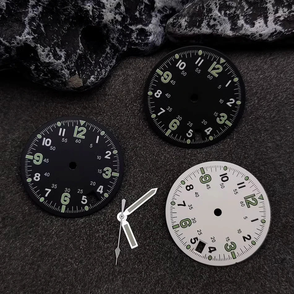 28.5MM NH35 Dial Double Digital Circle Watch Dial Hands Green Luminous Men's Watches Modification Accessories