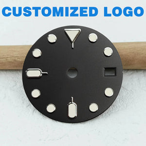This 28.5mm NH35 Dial,NH34 GMT watch dial features a clean, unmarked design with bright green luminous markers for excellent low-light visibility. Crafted from stainless steel, it is compatible with NH34, NH35, and NH36 movements. Logo customization is supported, making it ideal for brand building or custom watch projects. A one-time logo setup can be reused for future orders.