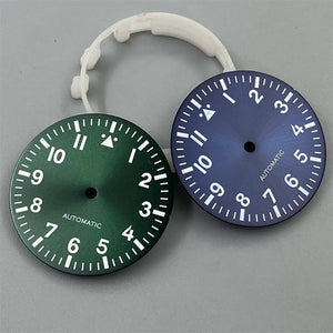 This 29mm watch dial features bright green luminous markers for easy readability (note: the white dial is not luminous). Compatible with a wide range of automatic movements including NH35, NH36, ETA 2824 / 2836, Miyota 8205 / 8215 / 821A, Mingzhu DG2813 / 3804, and PT5000. Available in white, black, and blue, it is perfect for custom watch projects, replacements, or upgrades.