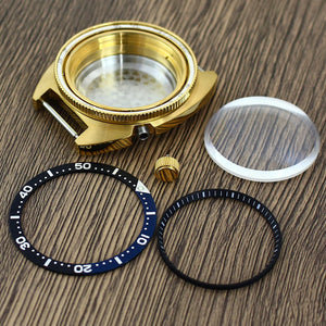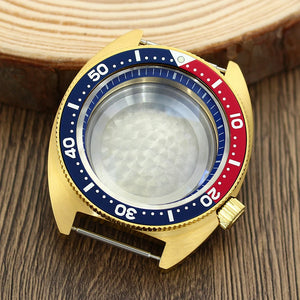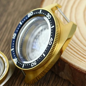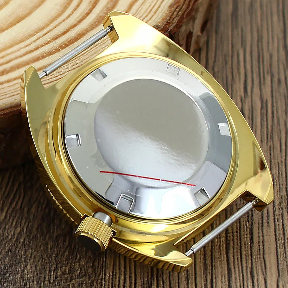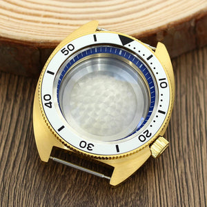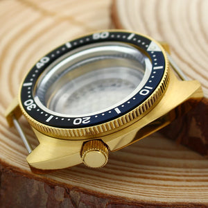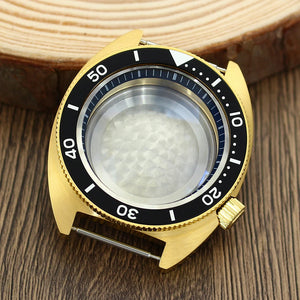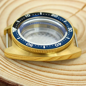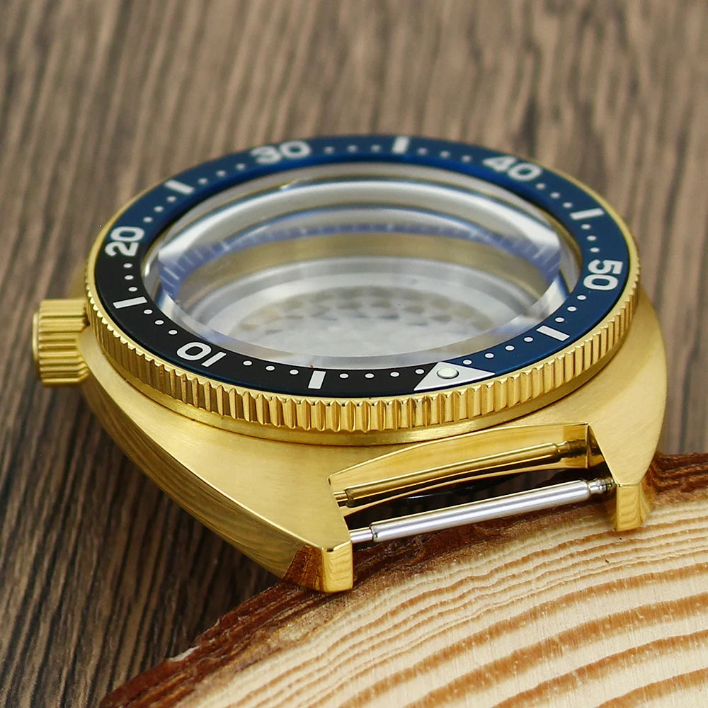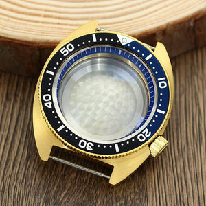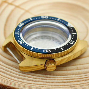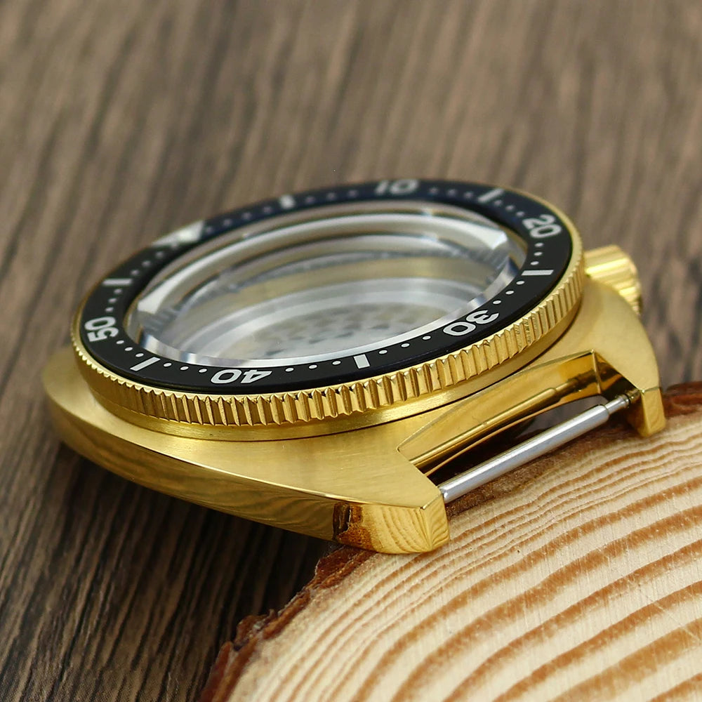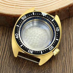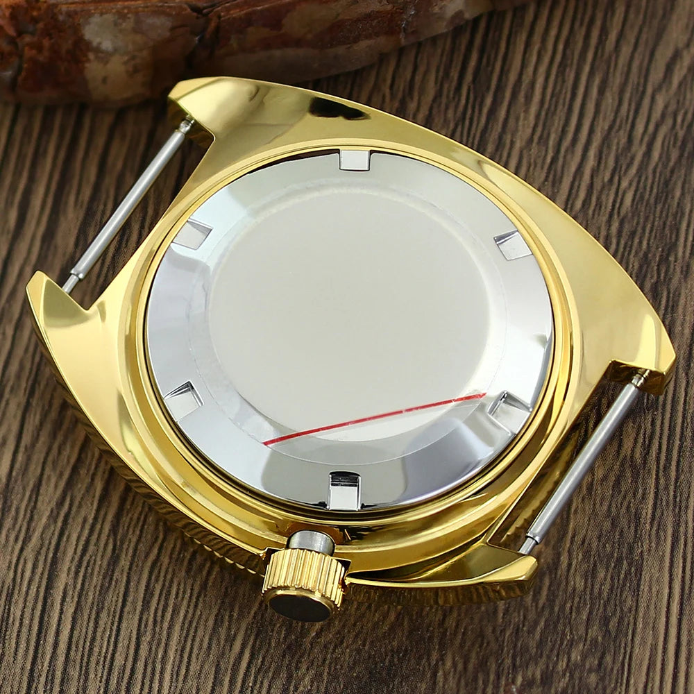 Elevate your Seiko mod with this striking 41mm Gold PVD Turtle-style watch case, inspired by the iconic Captain Willard and 6105 designs. Crafted from premium 316L stainless steel with a luxurious gold finish, it features a domed sapphire crystal for clarity and scratch resistance, and a screw-down crown at the 3.8 o’clock position for enhanced ergonomics and 10 sealing. Perfect for abalone or custom dials, this case accommodates 28.5mm dials and fits NH35, NH36, NH34, and 4R36 automatic movements. The solid stainless steel case back and 19mm strap width ensure durability and versatile styling—ideal for watchmakers and collectors seeking a bold, gold-tone dive mod platform.