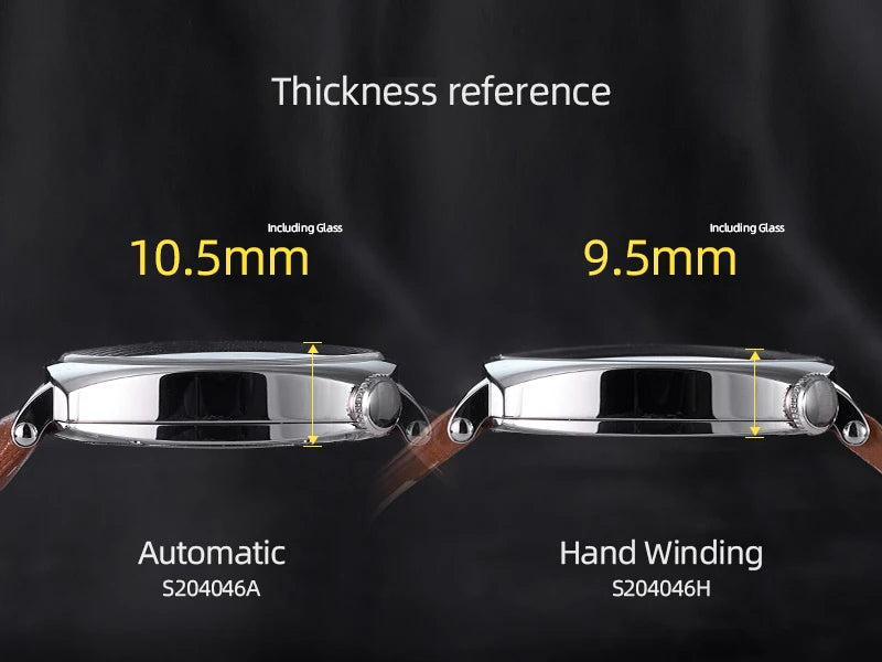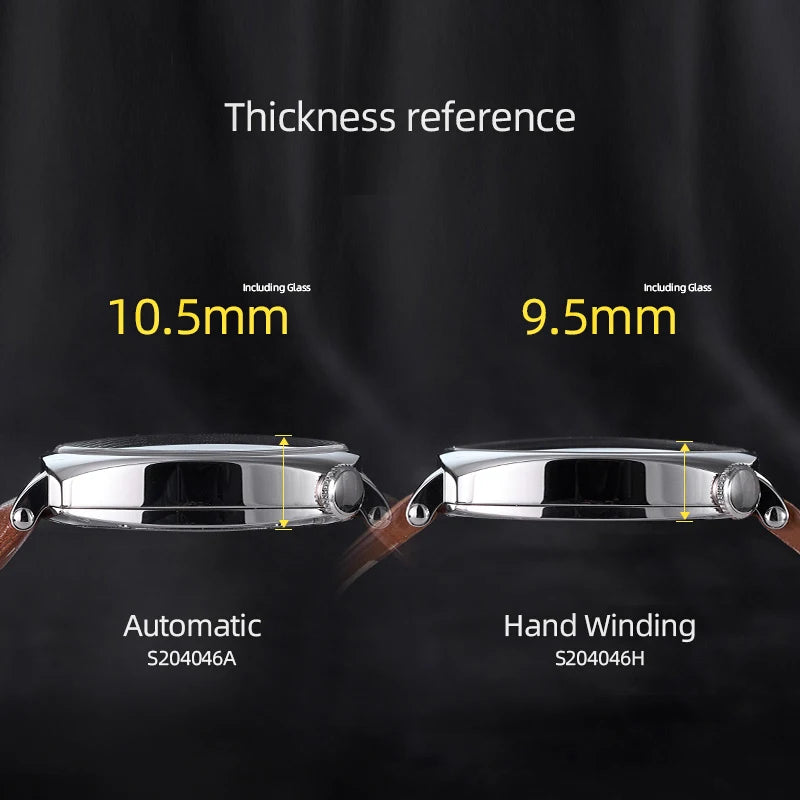 Thickness: Including Glass,10.5mm (automatic) / 9.5mm(hand winding)