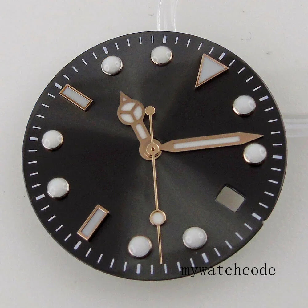 29mm Grey Sunburst Watch Dial Blue Luminous Rose Gold Edge Fit NH35A NH36A ETA2824 2836 Miyota82 Series Mingzhu DG 2813