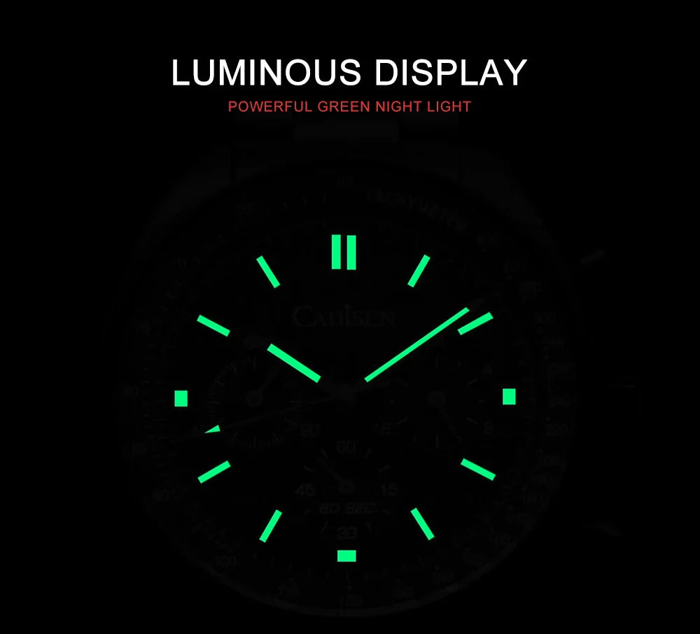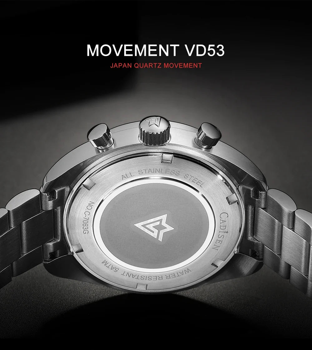 Experience timeless sophistication with the Cadisen C7063 Quartz Chronograph designed for business professionals who value style and performance. Crafted from durable stainless steel, this watch features a sapphire crystal dial, luminous hands, and a chronograph function. With 5Bar water resistance, it's perfect for everyday wear, including swimming. The push-button hidden clasp ensures a secure fit, while the numberless display adds a modern touch. A blend of luxury and functionality, the C7063 is a must-have for those who appreciate precision and elegance.