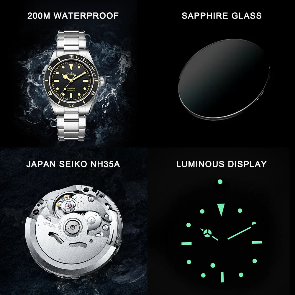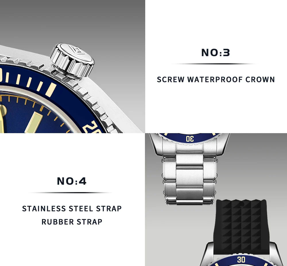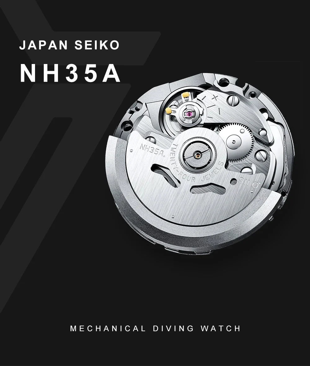 - Seiko NH35A Movement – Ensures accurate timekeeping with mechanical hand-wind and automatic self-wind options.