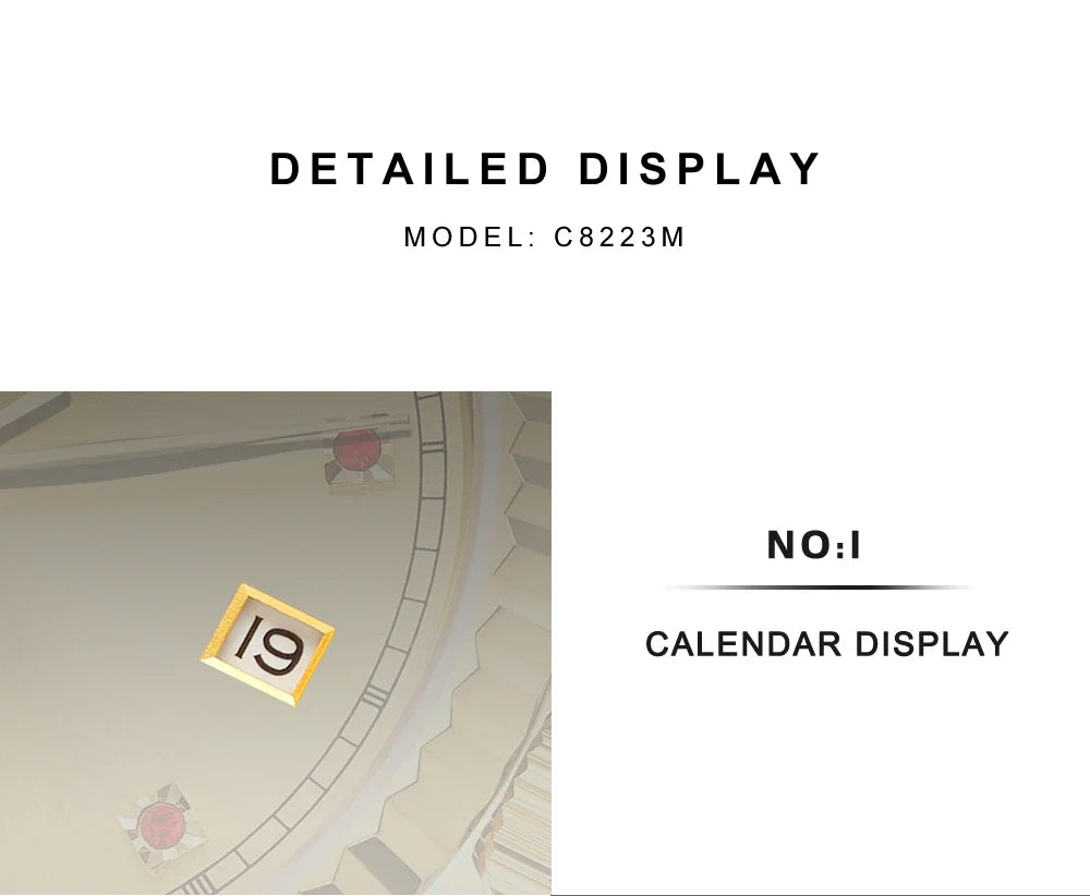 The Cadisen C8223 DateJust is a sophisticated automatic self-wind watch, designed for those who appreciate elegance and reliability. Crafted from 316L stainless steel, it features a sapphire crystal dial window, a complete calendar function, and 5Bar water resistance, making it perfect for daily wear. Powered by the MIYOTA 8215 movement, this watch ensures accurate timekeeping with a Perpetual rotor for self-winding efficiency. The solid stainless steel bracelet enhances durability and comfort, while the folding clasp with safety provides a secure fit.