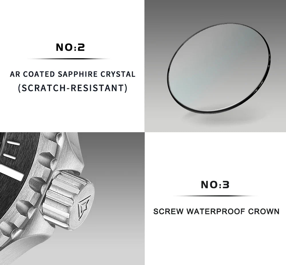 Experience luxury and precision with the Cadisen C8232 Submariner Mechanical Dive Watch. Powered by the Japanese NH35 movement, this watch boasts automatic self-winding for accurate timekeeping. With a water resistance rating of 100M, it's perfect for swimming and diving. The luminous hands offer visibility in any lighting, while the premium stainless steel build adds durability to its refined design.