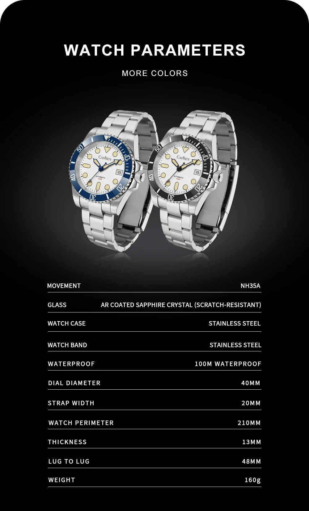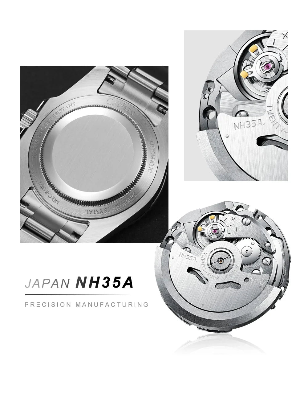 - Seiko NH35 Automatic Movement – Ensures accurate, self-winding timekeeping without frequent manual adjustments.