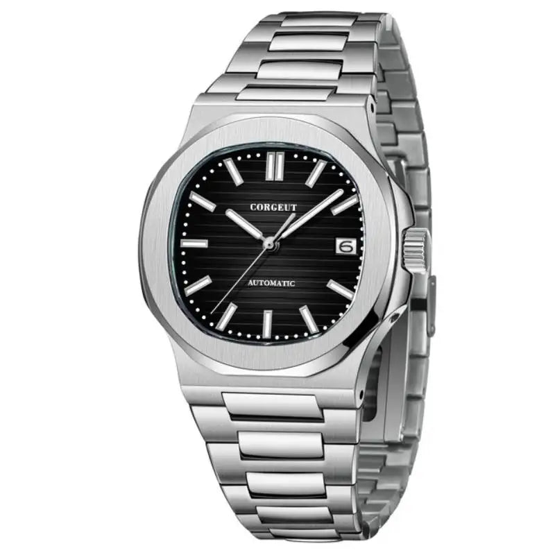 The Corgeut 6017 Nautilus Watch features a precise NH35 automatic movement housed in a 40mm case with a custom logo, combining reliability with distinctive style. Its sapphire crystal ensures exceptional scratch resistance, while the 10-bar water resistance rating offers durability for everyday wear. The luminous markers enhance readability in low-light conditions, making this timepiece both functional and elegant for discerning watch enthusiasts.