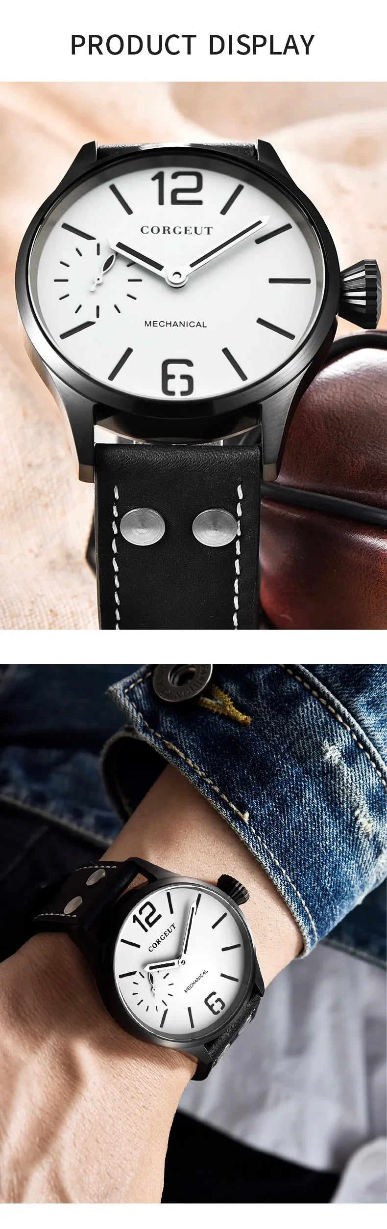 The Corgeut 6025 pilot watch features a precise ST3600 manual mechanical movement with a sub-second dial, ensuring accurate timekeeping. Its 44mm case is protected by a durable sapphire crystal mirror, offering excellent scratch resistance. The watch is water-resistant up to 5ATM, suitable for everyday wear. A transparent glass back reveals the intricate mechanics, appealing to enthusiasts who appreciate craftsmanship and engineering. This timepiece combines robust functionality with classic pilot watch aesthetics for a reliable and stylish accessory.