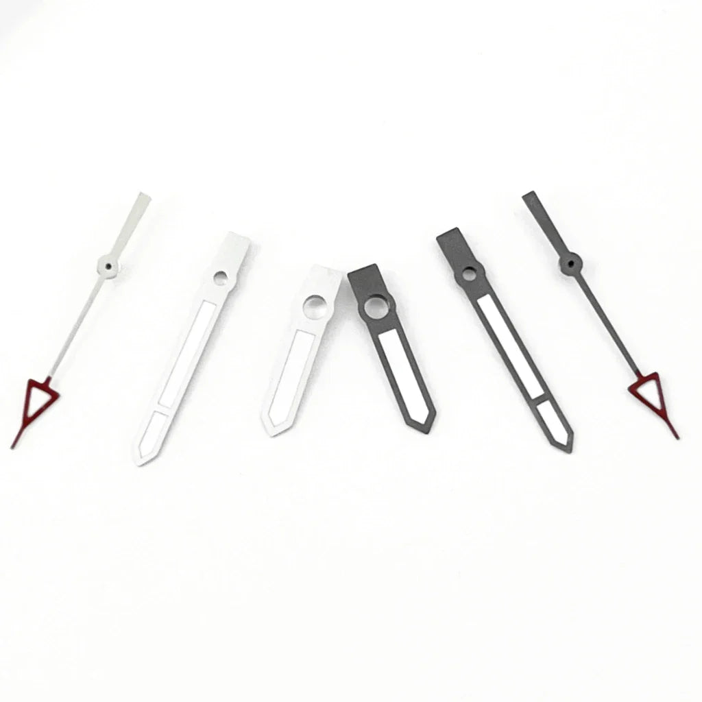 Precision-crafted ETA-style watch hands in silver and black finishes, engineered for perfect compatibility with multiple movement types including NH35/36, PT5000, ETA2836/2824, DG2813/3804, and Miyota 8215/8205/821A. These high-quality replacement hands ensure seamless integration for watchmakers and enthusiasts seeking professional-grade watch modification components.