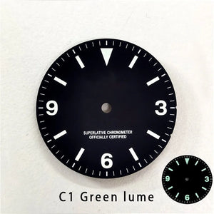 Explore Watch Dial Retro Matte Black Dial 369 Watch Face BGW9 C3 Lume Watch Mod NH35 Movement 28.5mm NH34Gmt Custom Logo and Text