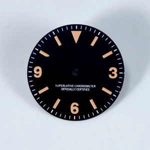 28.5mm Retro Matte Black Explorer 3-6-9 Watch Dial