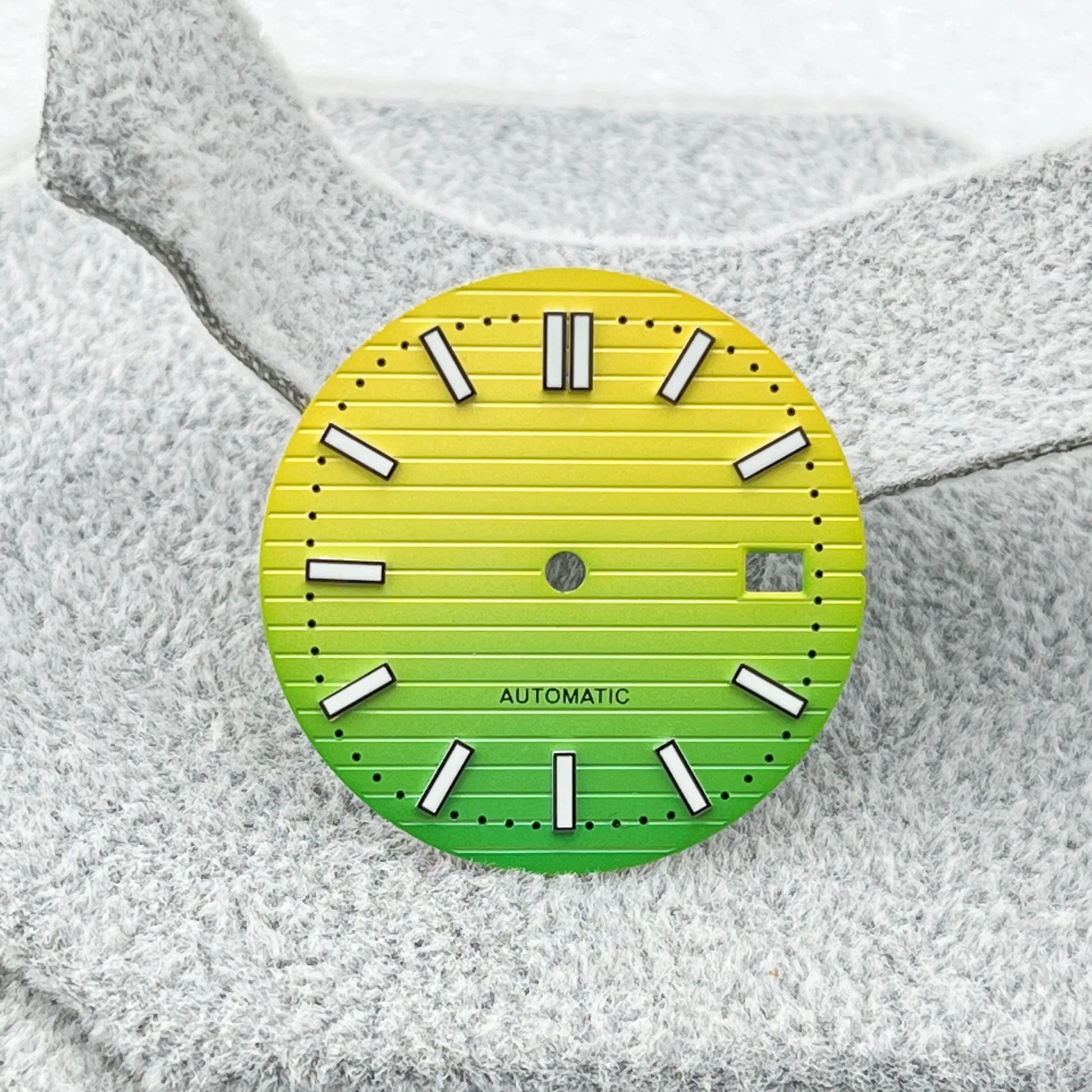 Gradient Color NH35 Watch Dial Green Luminous 30.5mm Watch Faces with Single Calendar Date Watch Accessories for NH35 Movement