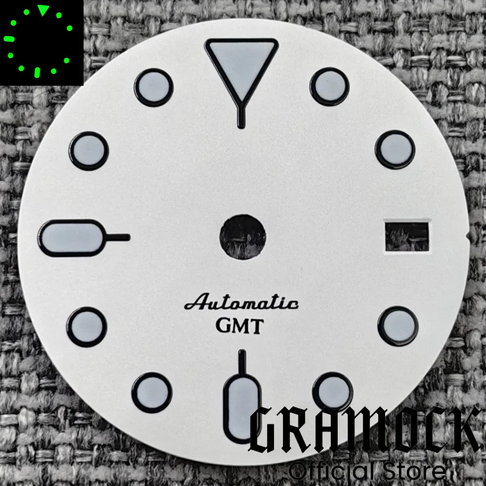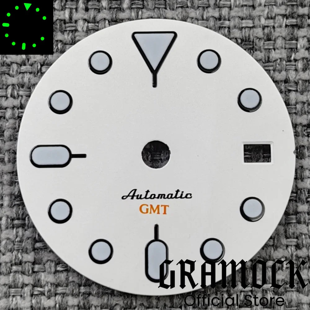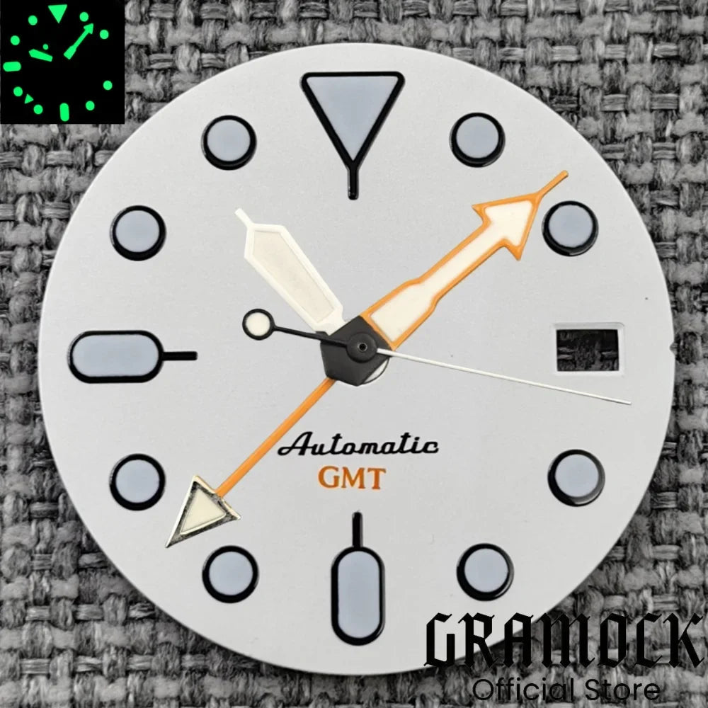 29mm Blue Red Black Orange GMT NH34 White Glossy Dial With Hands C3 Lume Fit NH34 Mechanical Watch Modified Accessories