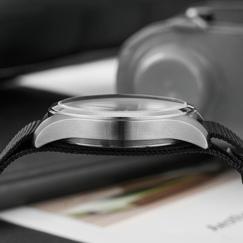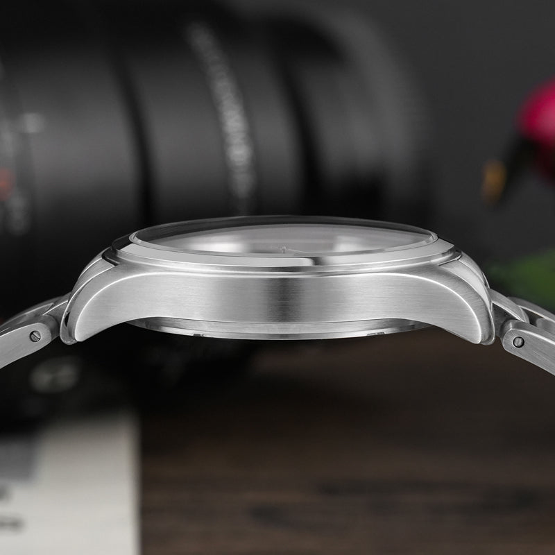 Case material : 316L. Case full brushed and bezel polished (Now the new batch will be sent with sandblast hands finishing now )