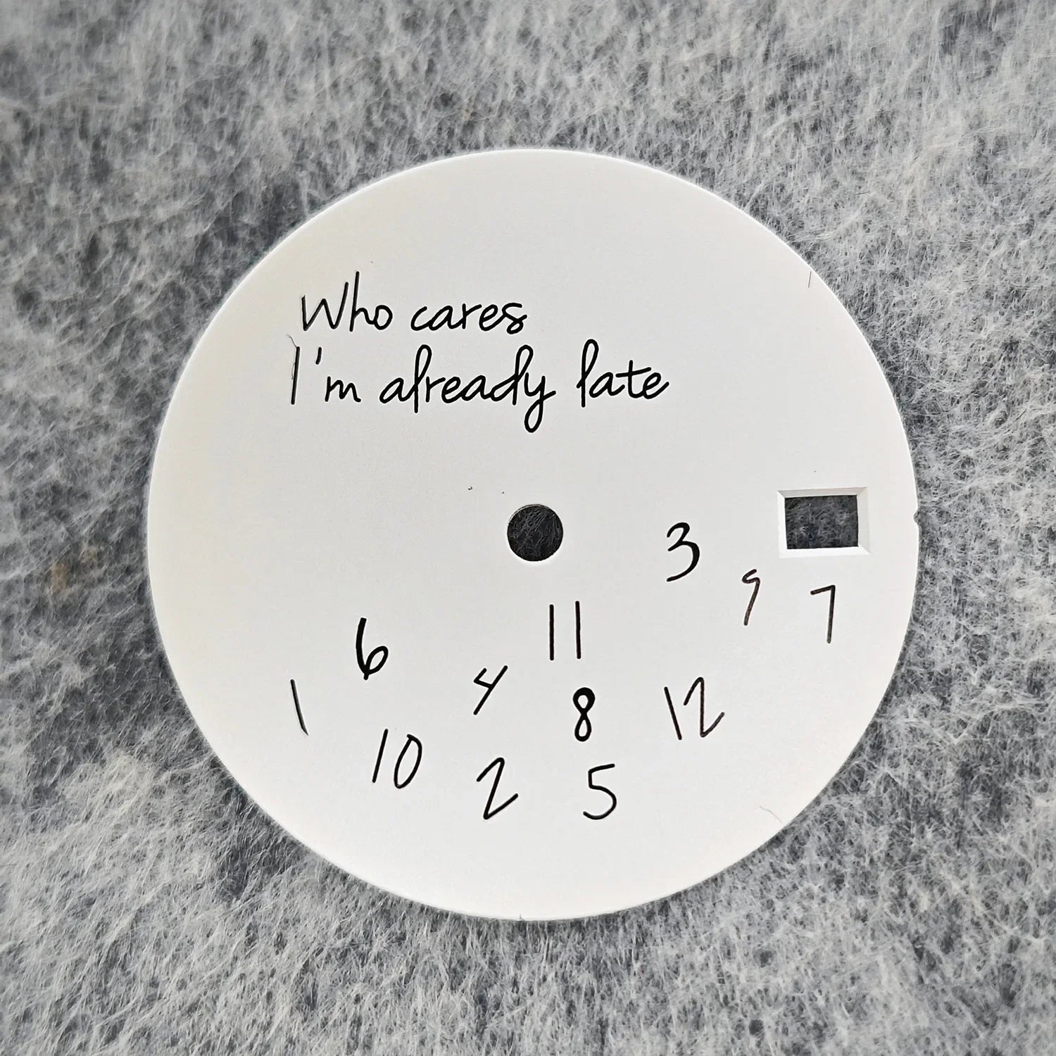New Log Modified Watch Face 28.5mm DIY Watch Dial Fits NH35/4R36 Movement Who Cares Lt's Already Late Watch Accessories