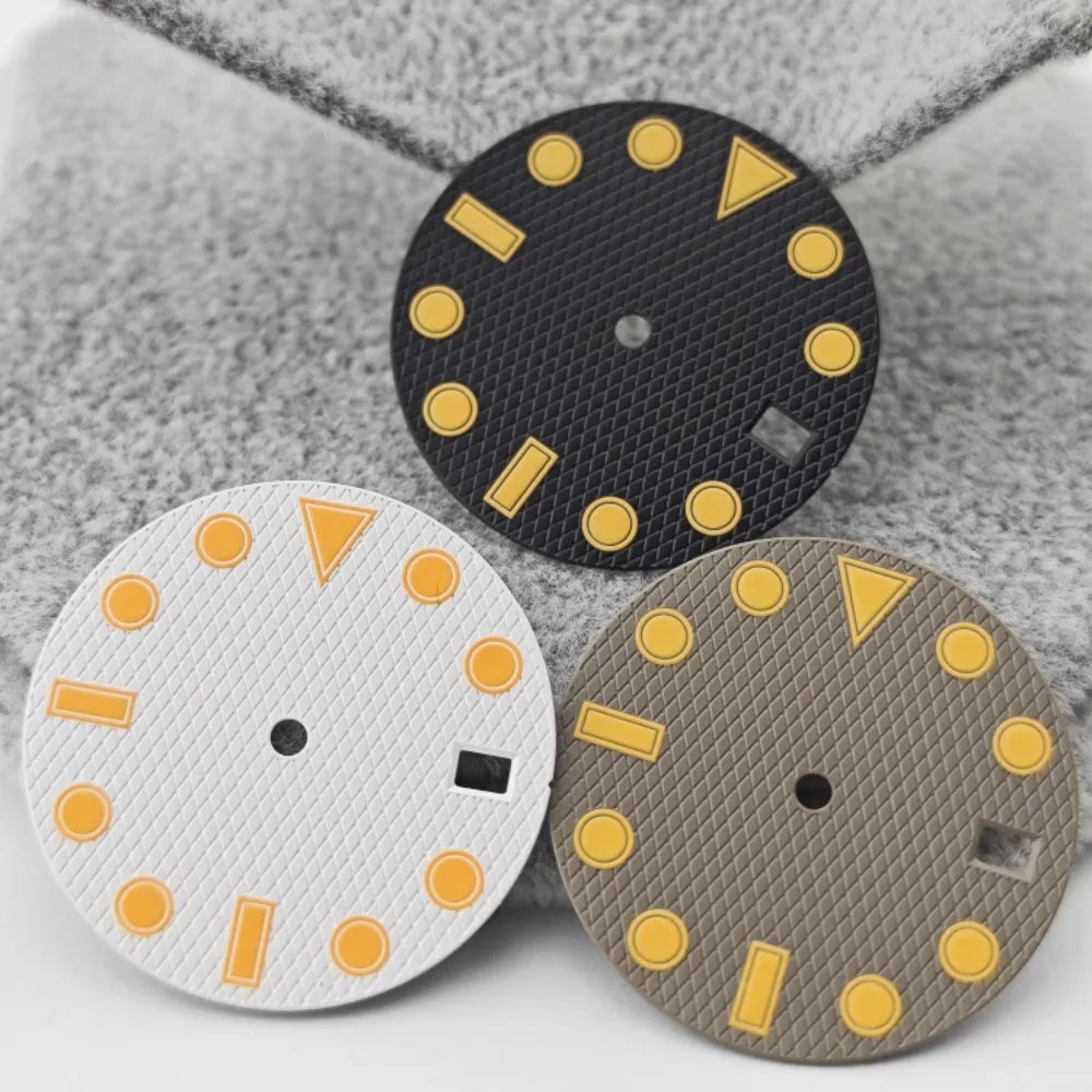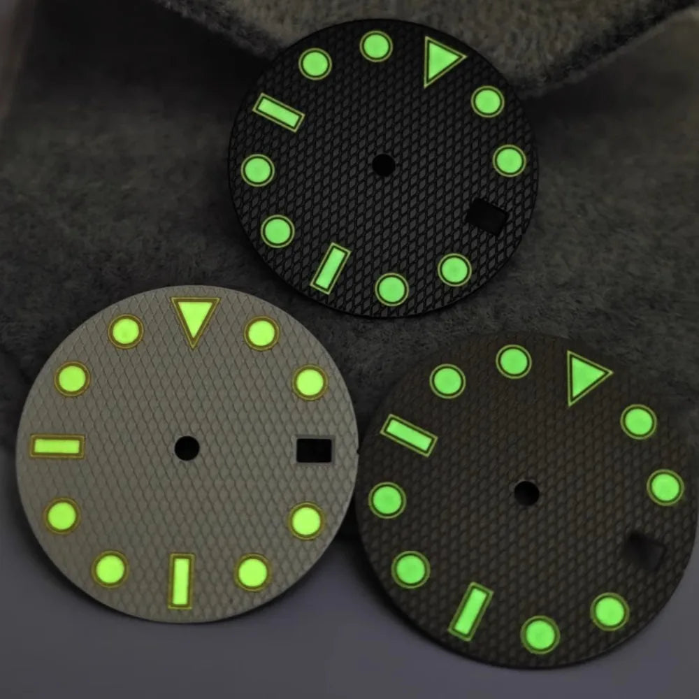 NH35 Watch Dial 28.5mm Diamond Pattern Retro Dial Green Luminous Watch Faces with Single Date Watch Accessory for NH35 Movement