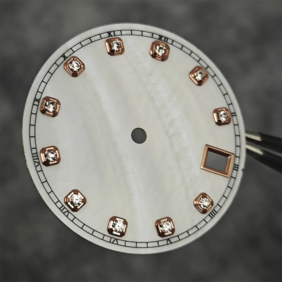 NH35 Watch Dial Watch Hands 28.5mm Diamond Inlaid Shell of Pearl Pattern Surface Watch Accessories for NH35/NH36 Movement