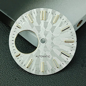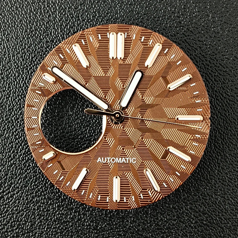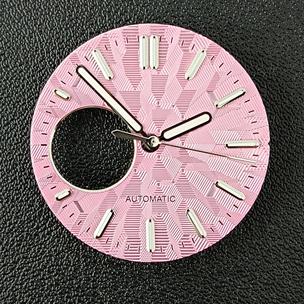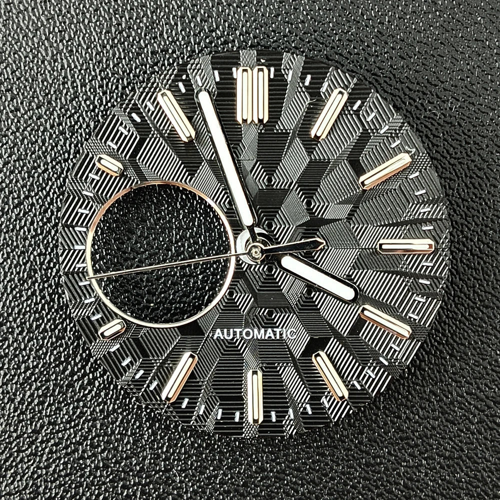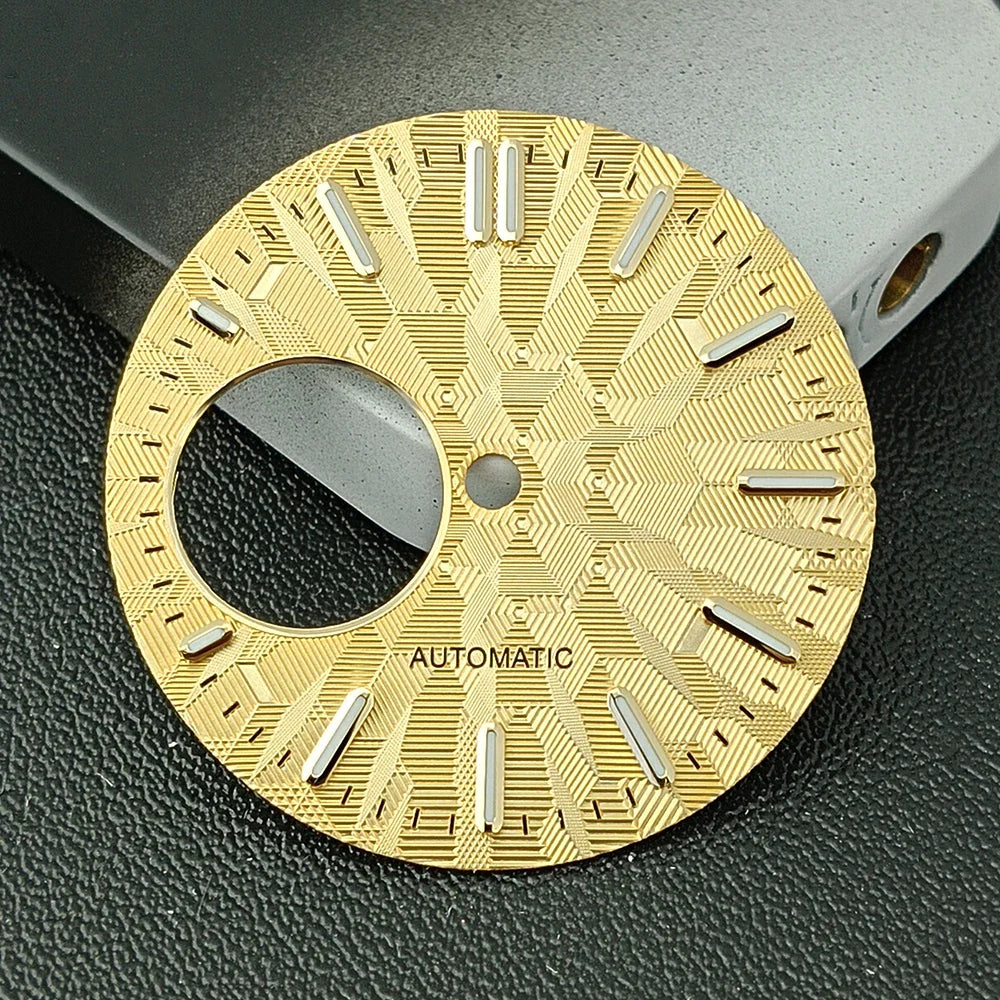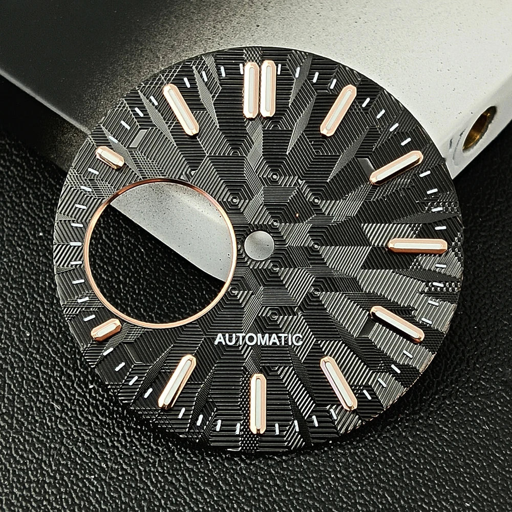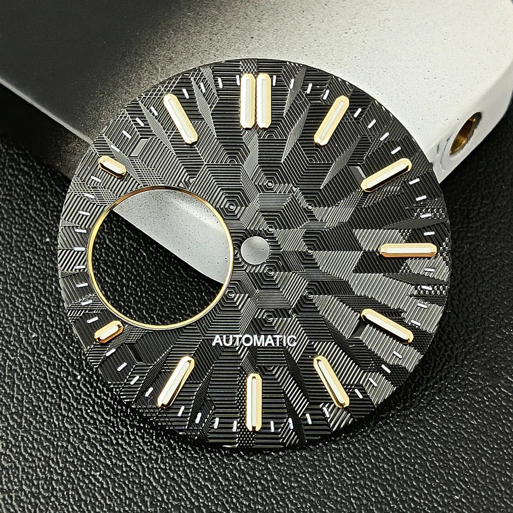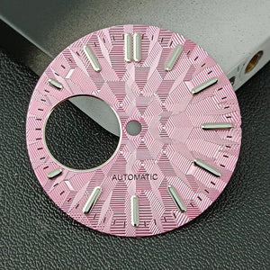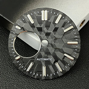 Upgrade your watch build with this 28.5mm NH38 watch dial, available in both sterile (no logo) and custom-logo versions. Featuring bright green luminous markers and precise craftsmanship, it’s the perfect accessory for NH38 movement modification projects.