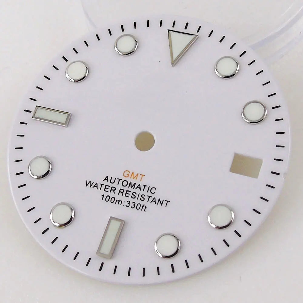 Nologo Sterile 29mm White NH 34A Watch Dial Face for D iver G MT Watch Mod Black Edge Markers Orange Hand Watches Cases Parts