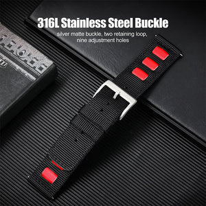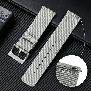 Leather Accented Canvas Nylon Watch Band 20mm/22mm