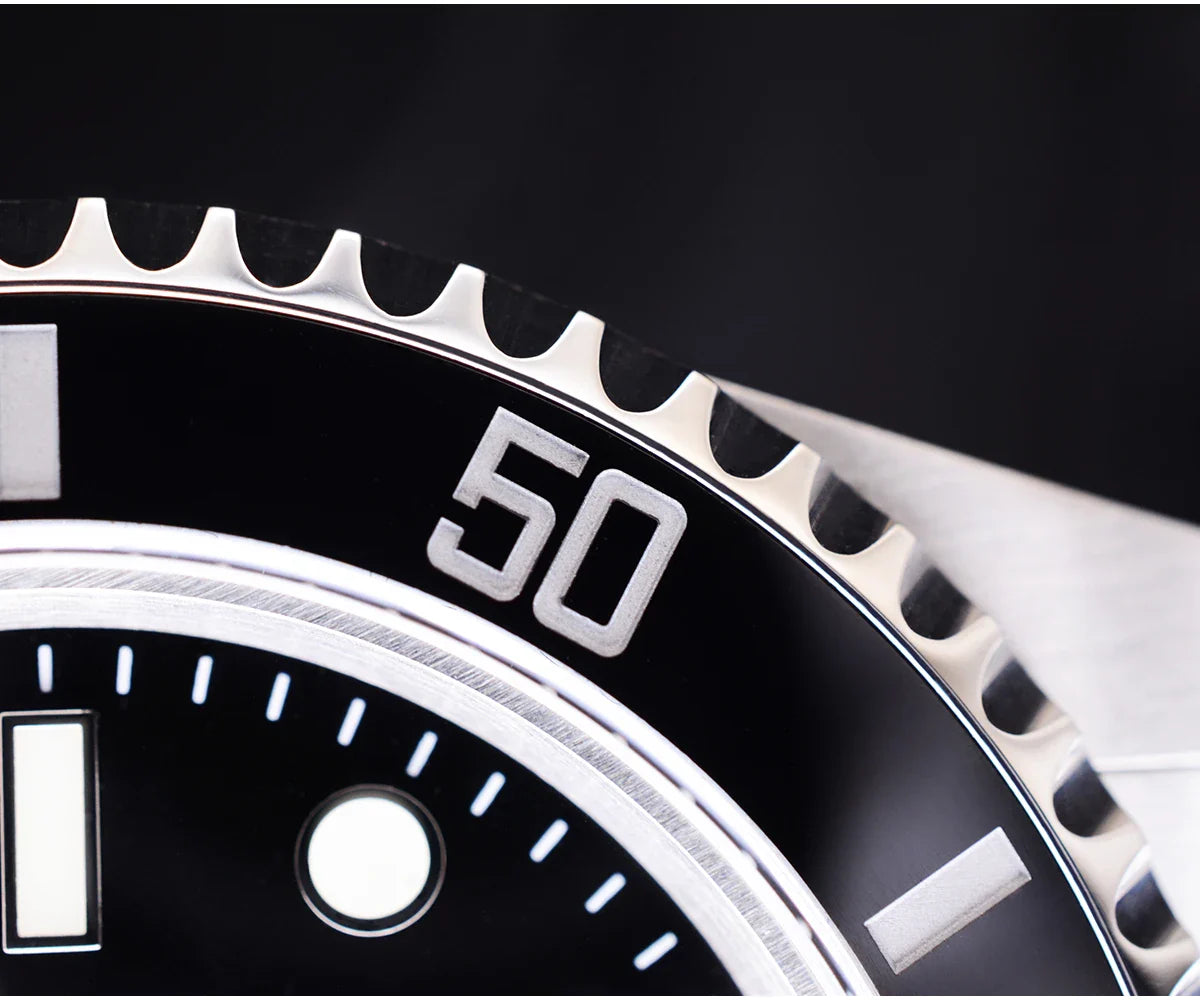 Bezel: Black, Blue, Green, Red, Unidirectional Bezel,Ceramic Top Ring, 12 O'clock Luminous Markers