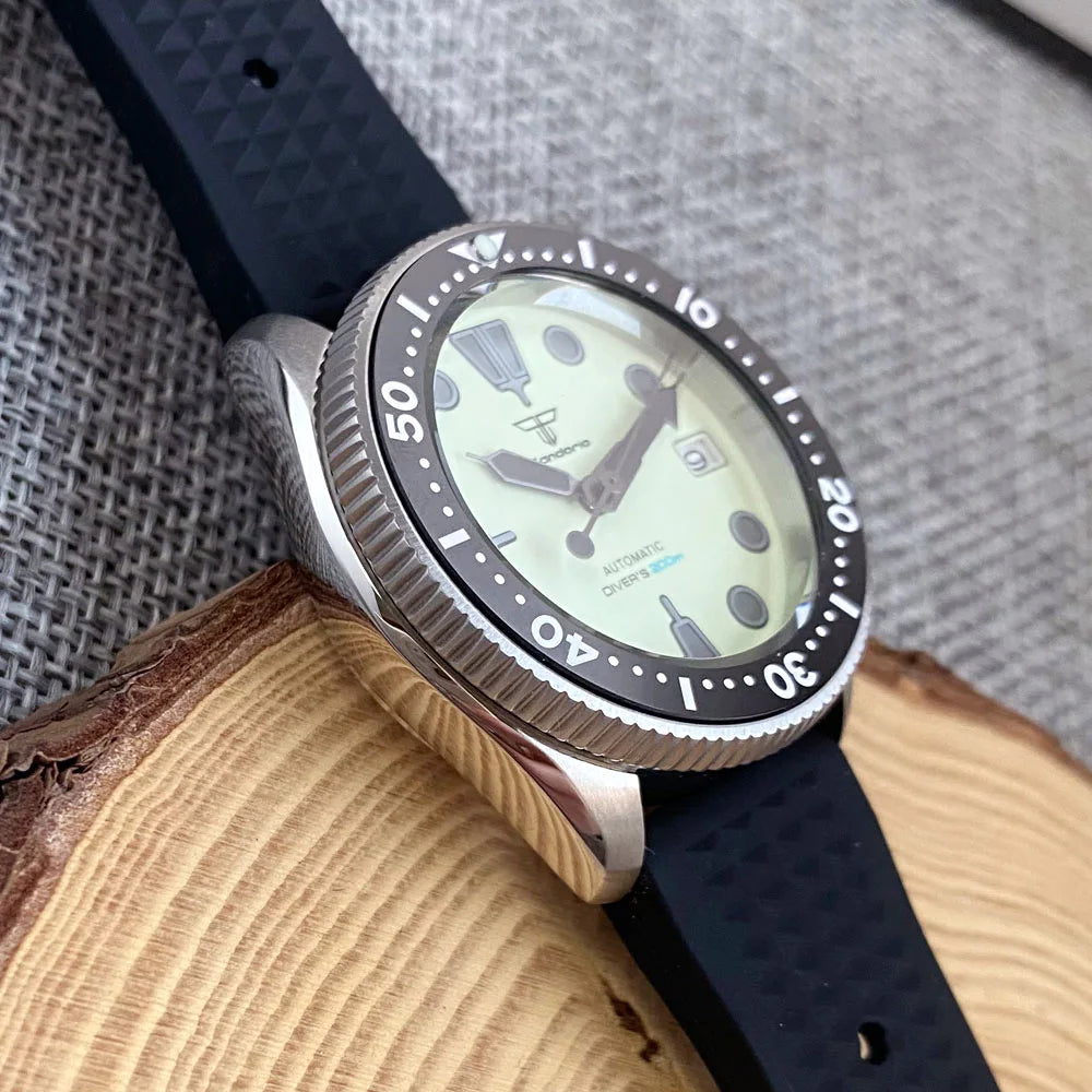 The Tandorio 37mm SKX Diver Watch offers exceptional durability with its 200m waterproofing and 3.8 crown. Its NH36 mechanical movement ensures precision timekeeping, while its full green luminous dial allows for easy reading in any lighting. Stay on schedule with the weekday date feature.