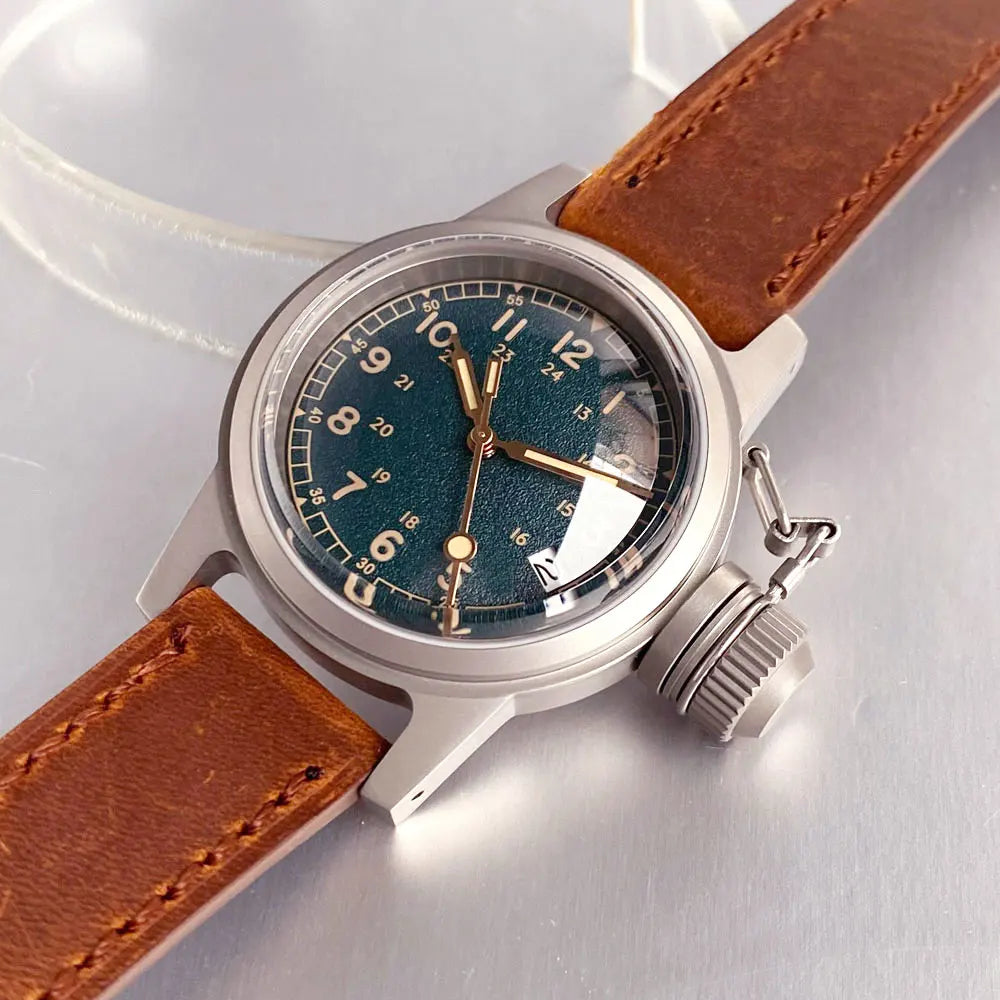 Introducing the Tandorio Militarywatch, featuring a 36mm case with a sandblasted dome sapphire crystal and a water resistance up to 20ATM. Powered by a NH35A automatic movement, this watch is both reliable and durable for any rugged situation. Upgrade your timekeeping with Tandorio.