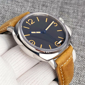 The Tandorio Radiomir Homage TD113A California Sandwich Watch is a timeless piece that fuses vintage Italian military design with contemporary watchmaking technology. With its square polished stainless steel case, classic California sandwich dial, and reliable automatic movement, this watch is perfect for diving, casual outings, or formal occasions. Its robust build, 200m water resistance, and luminous hands ensure durability and functionality under any condition.