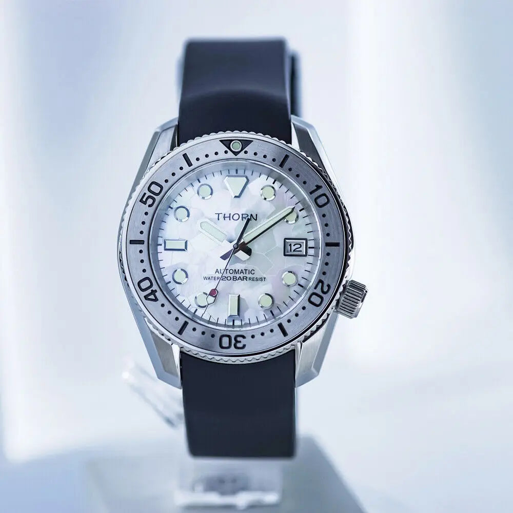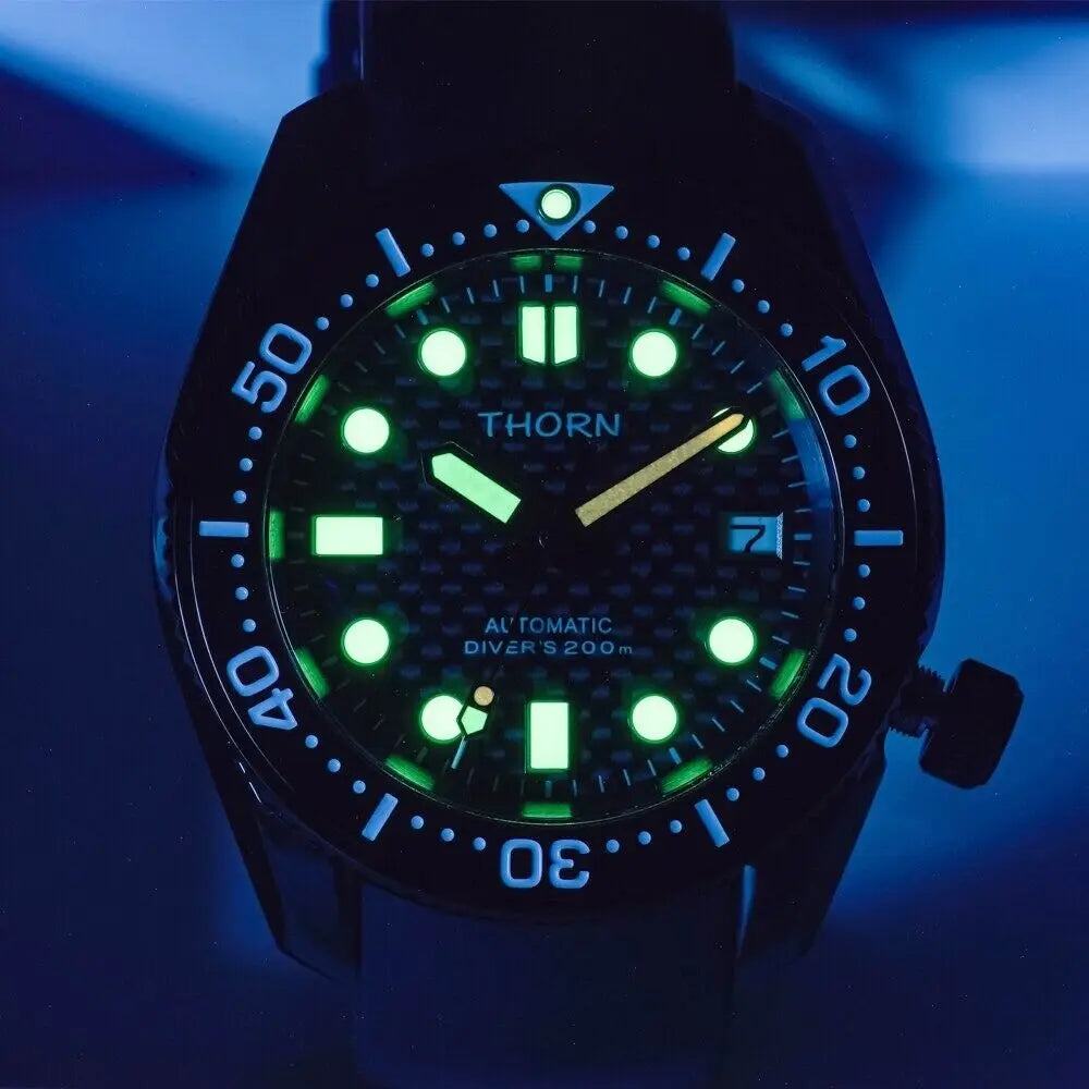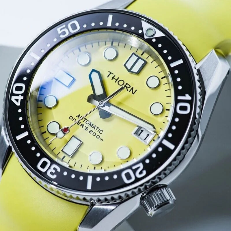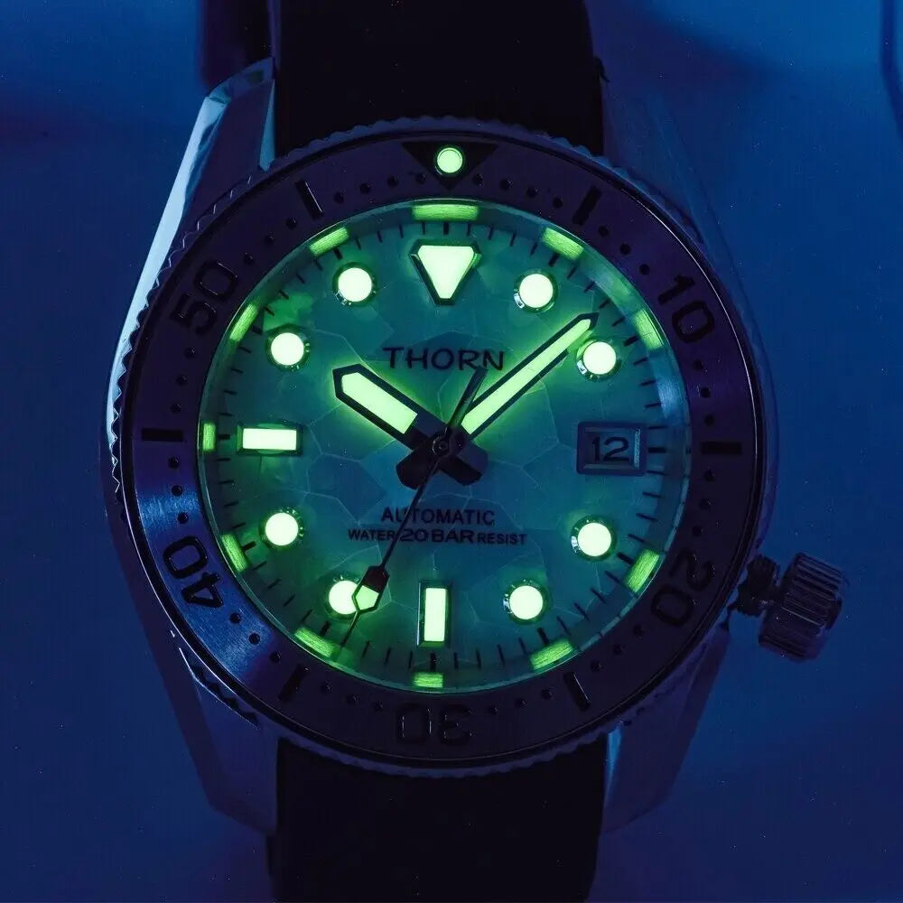 Engineered for serious divers, the THORN SHY019 MM200 combines professional-grade specifications with precision craftsmanship. Featuring the reliable NH35A movement, 316L stainless steel construction, and 20Bar (200M) water resistance, this 42mm timepiece offers exceptional durability. The AR-coated sapphire crystal ensures superior clarity underwater, while C3 luminescence provides optimal readability in low-light conditions. A technical homage to the iconic SPB185/187J1 design.