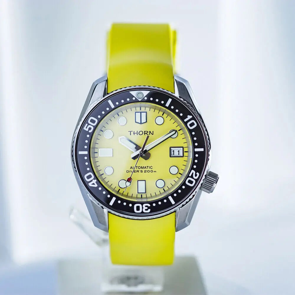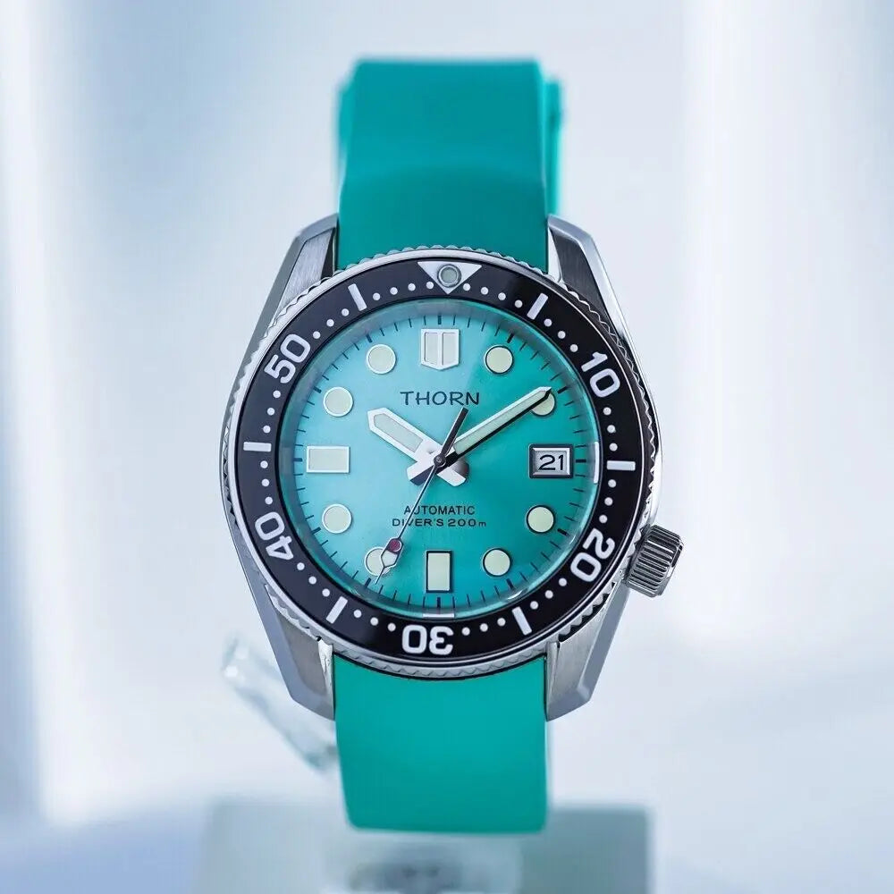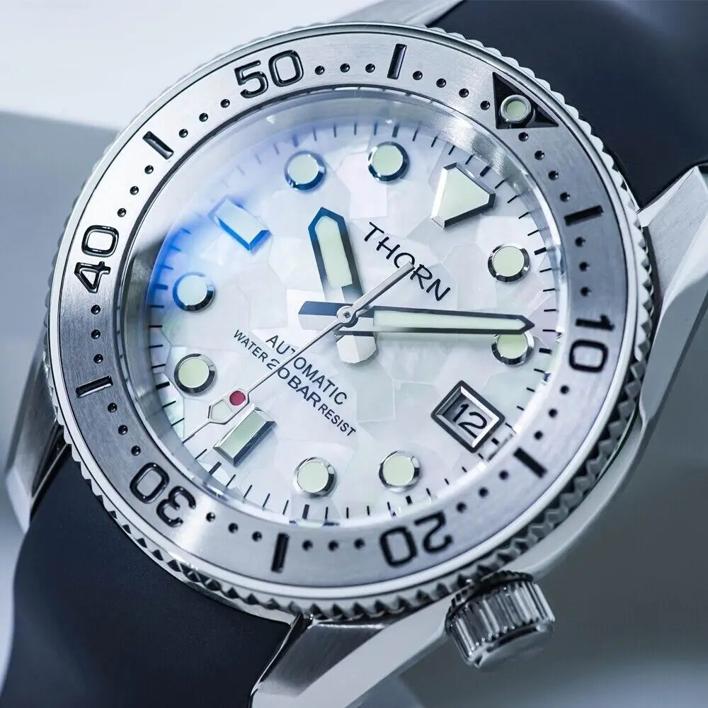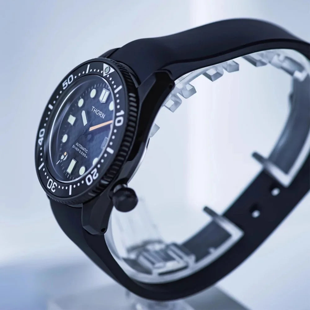 Engineered for serious divers, the THORN SHY019 MM200 combines professional-grade specifications with precision craftsmanship. Featuring the reliable NH35A movement, 316L stainless steel construction, and 20Bar (200M) water resistance, this 42mm timepiece offers exceptional durability. The AR-coated sapphire crystal ensures superior clarity underwater, while C3 luminescence provides optimal readability in low-light conditions. A technical homage to the iconic SPB185/187J1 design.