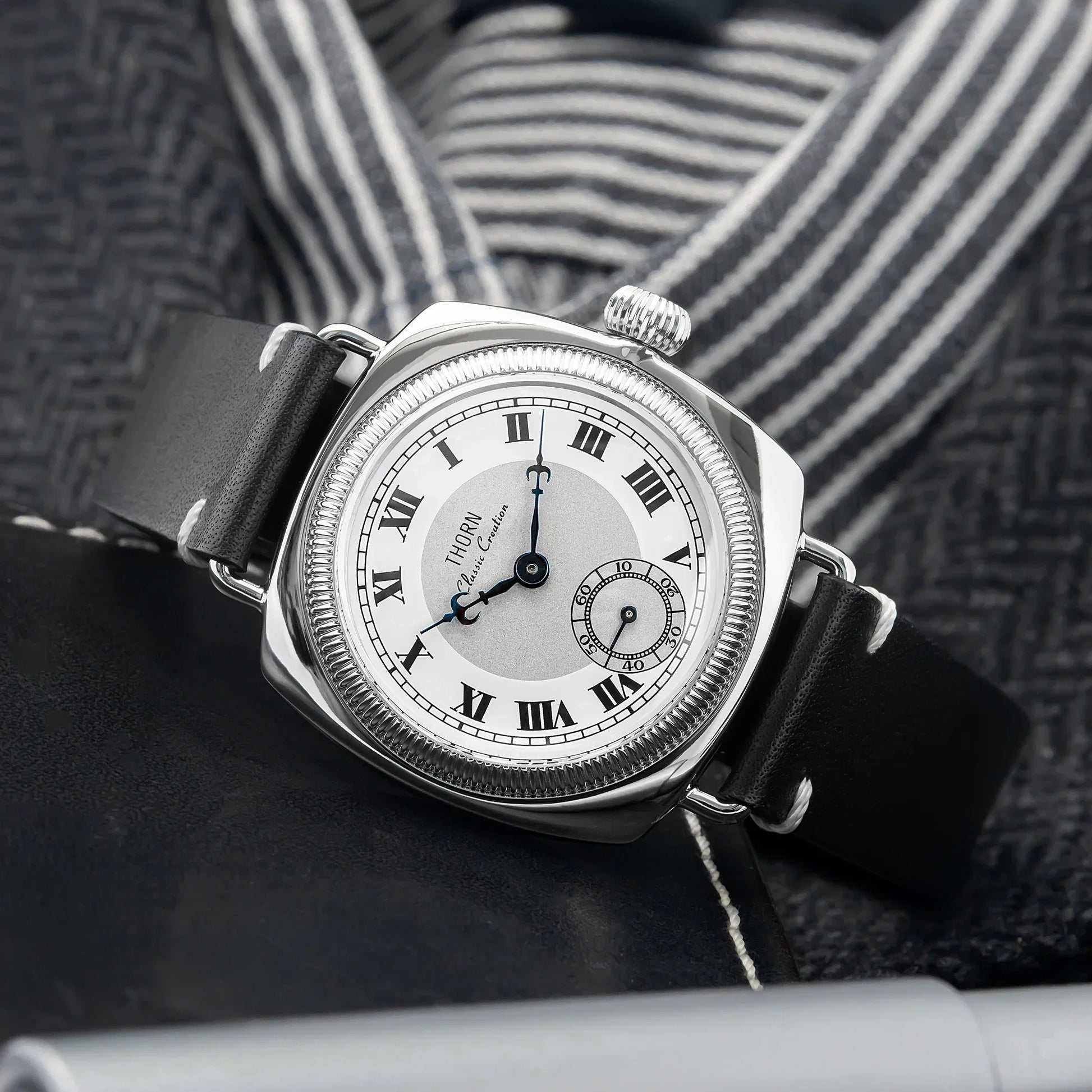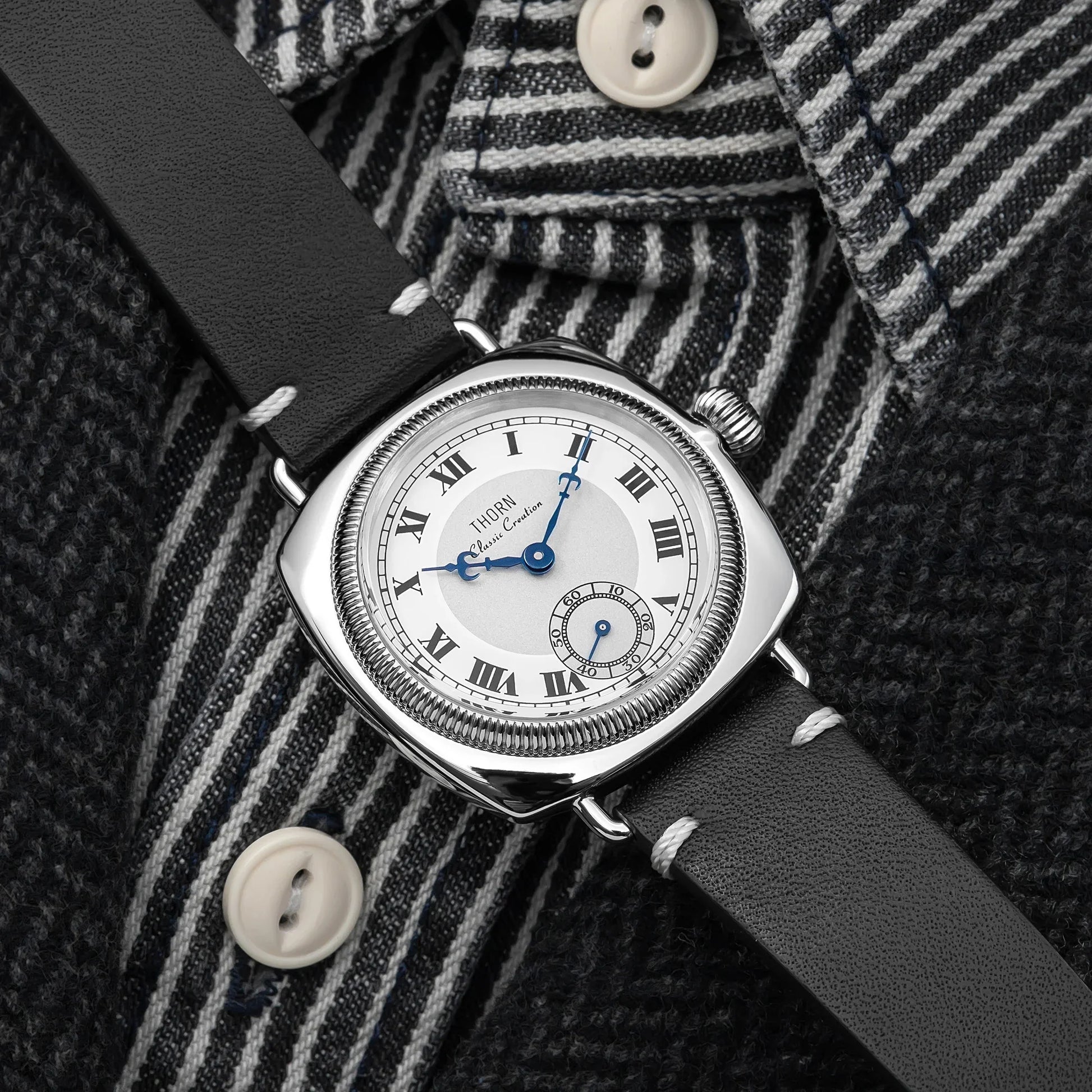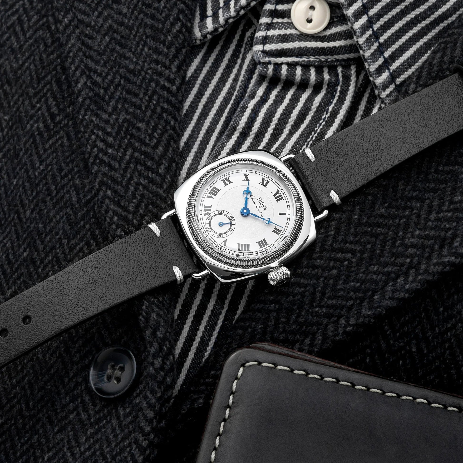 The Thorn T002 combines vintage aesthetics with modern engineering in a distinctive square case design. Featuring precision VD78 quartz movement and a sub-second dial, this 36mm timepiece offers exceptional durability with 10bar water resistance and scratch-resistant sapphire crystal glass. A sophisticated choice for collectors who appreciate retro styling with contemporary reliability.