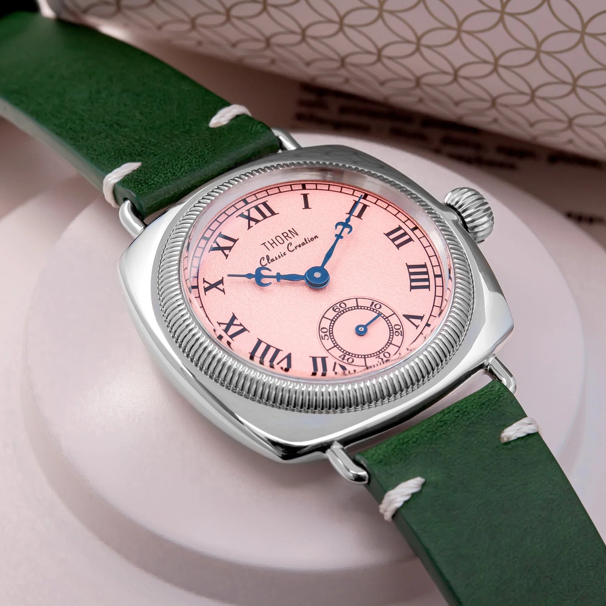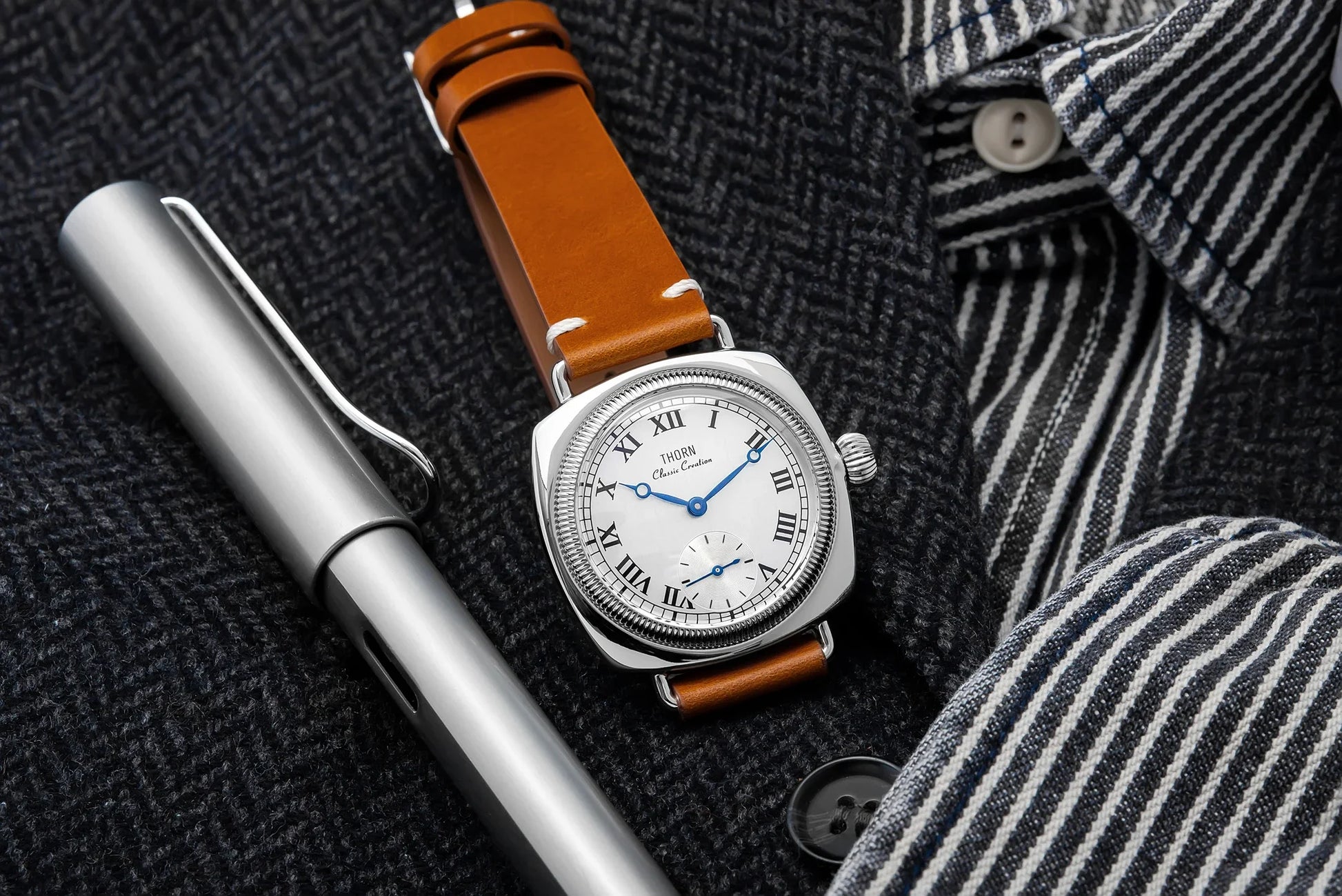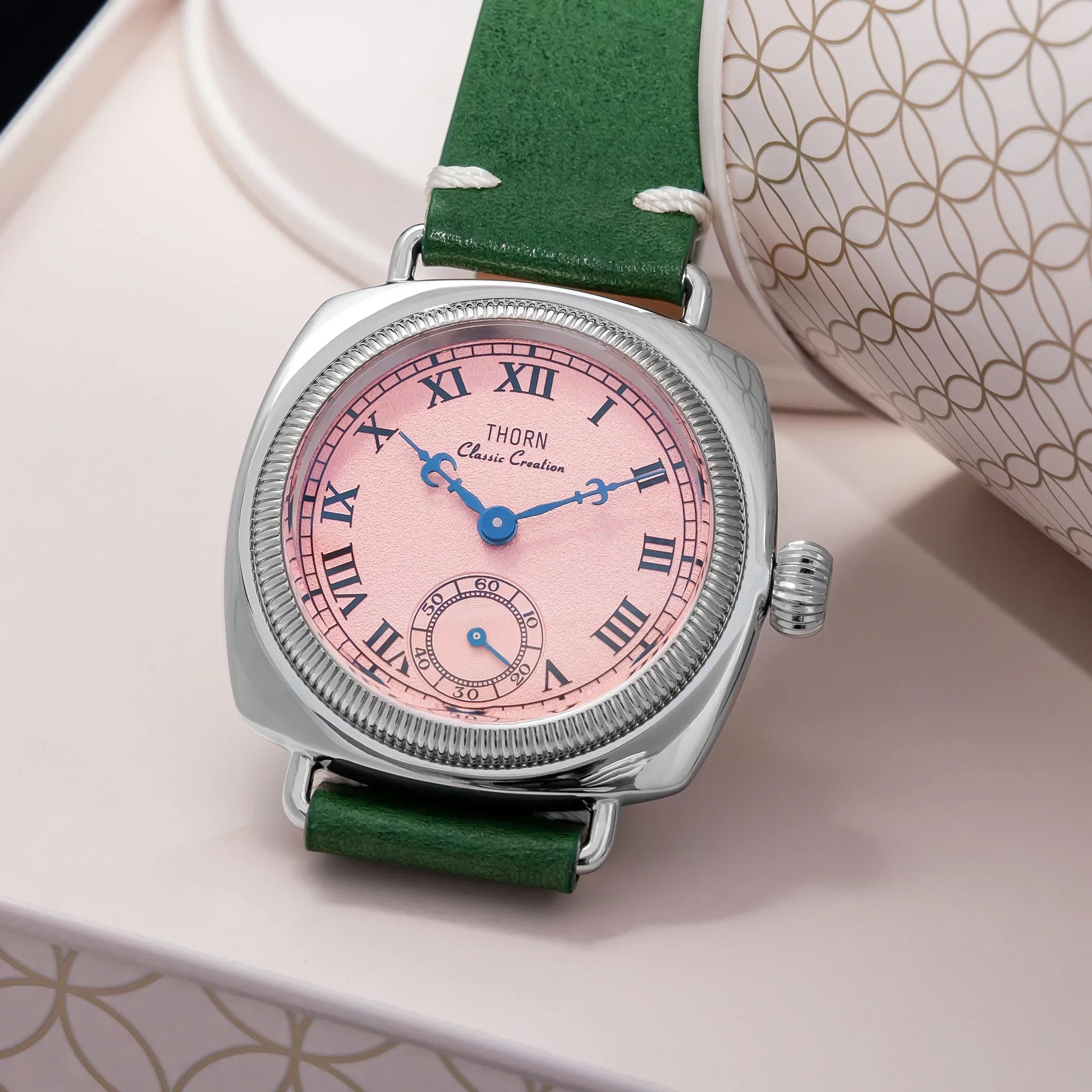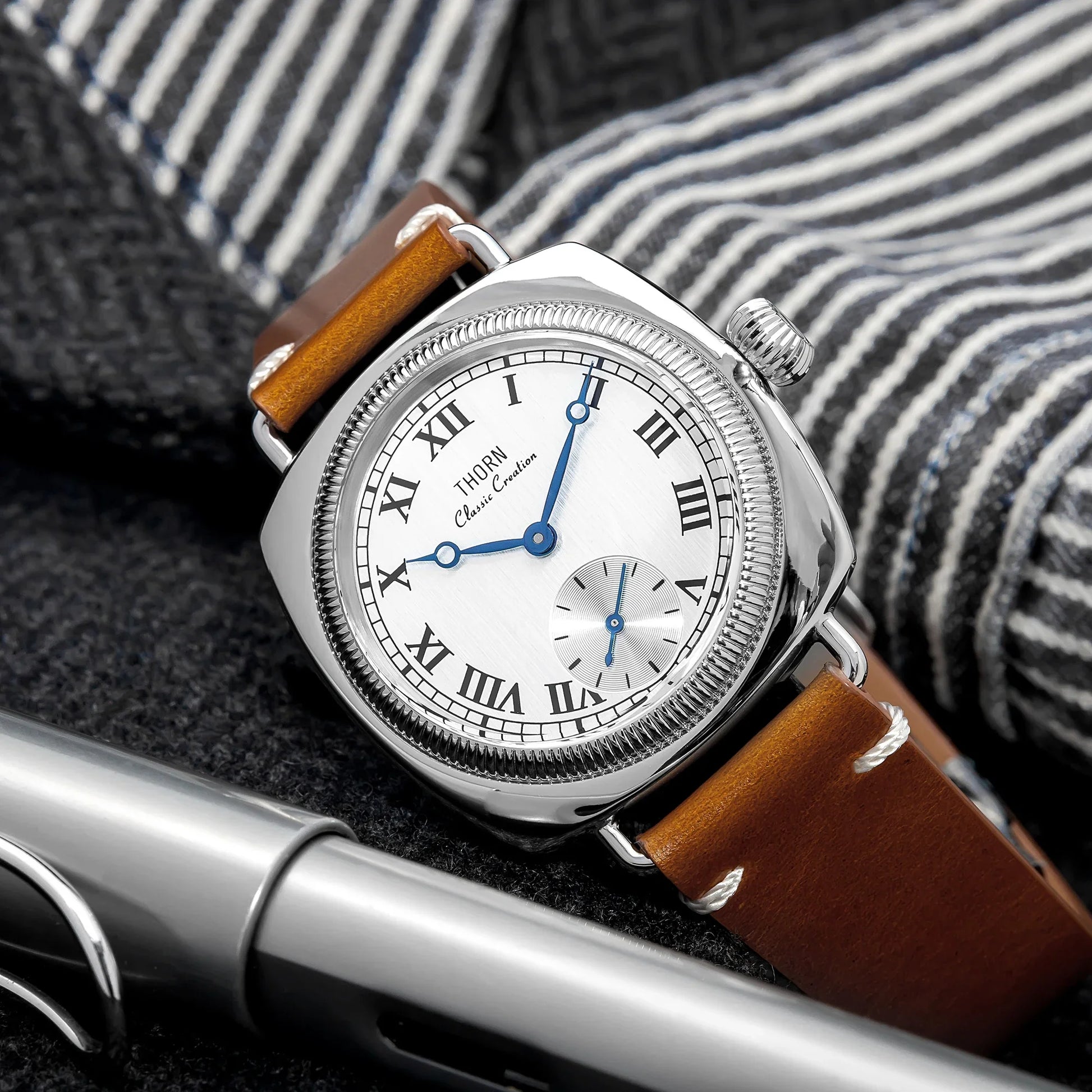 The Thorn T002 combines vintage aesthetics with modern engineering in a distinctive square case design. Featuring precision VD78 quartz movement and a sub-second dial, this 36mm timepiece offers exceptional durability with 10bar water resistance and scratch-resistant sapphire crystal glass. A sophisticated choice for collectors who appreciate retro styling with contemporary reliability.