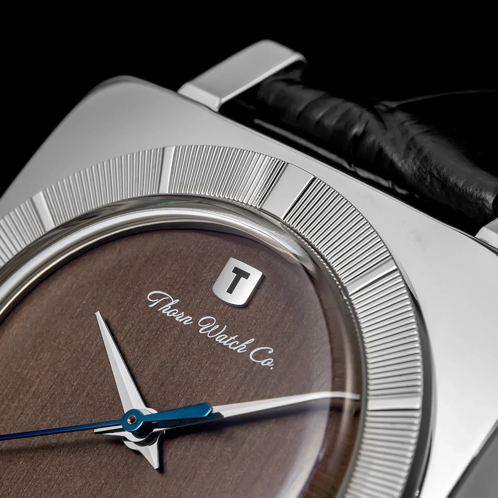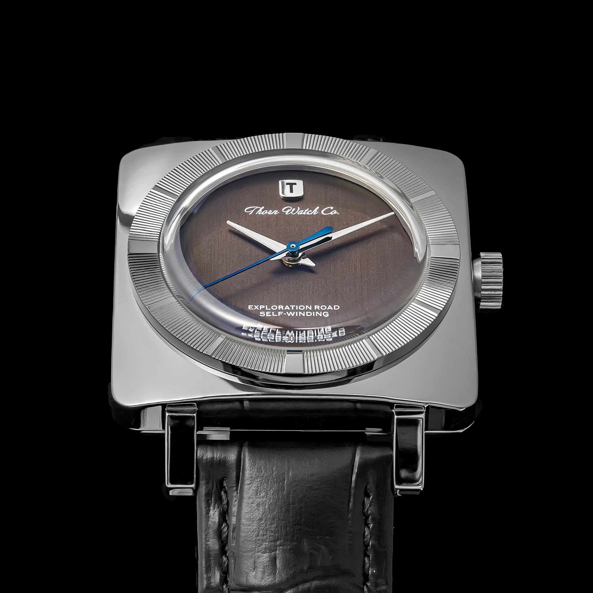 The THORN T016 Square Watch features a 34mm case housing the reliable PT5000 movement, ensuring precise timekeeping. Its sapphire crystal with a distinctive pot lid bubble mirror design offers exceptional durability and a unique aesthetic. Rated 5ATM water-resistant, this dress watch combines elegance with practical resilience, making it a refined choice for fashion-conscious professionals.