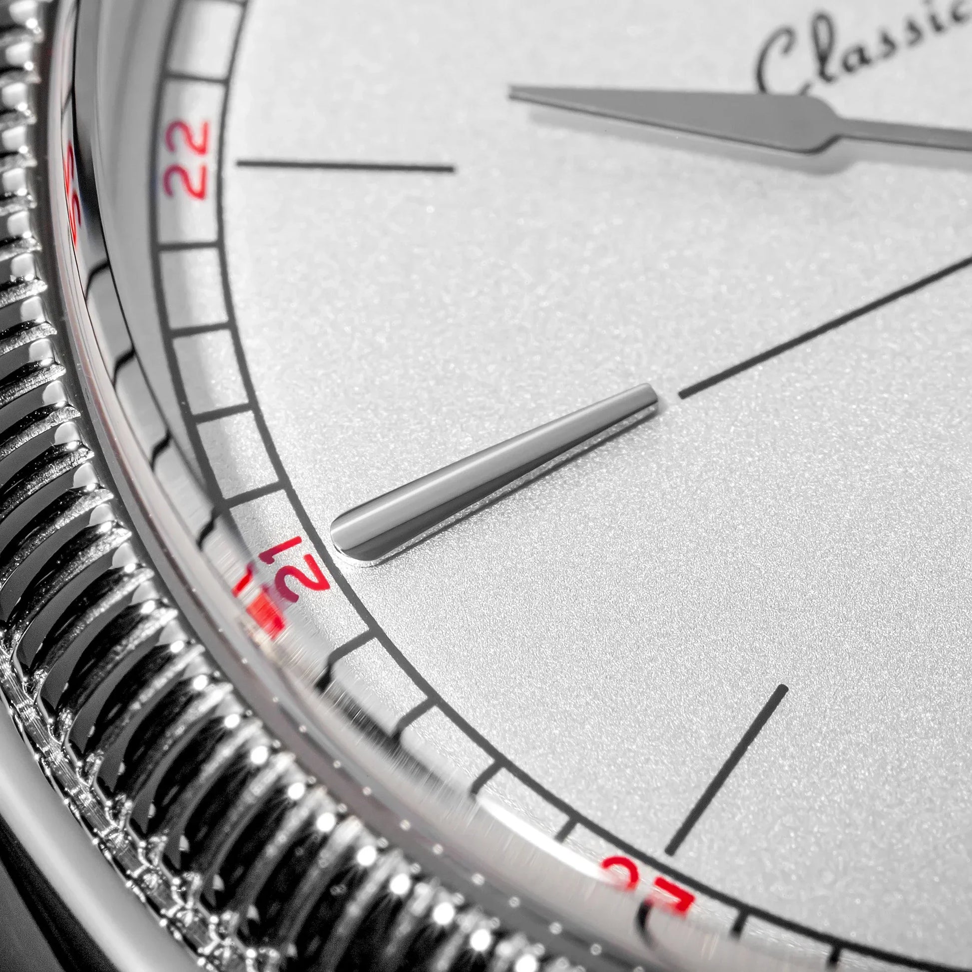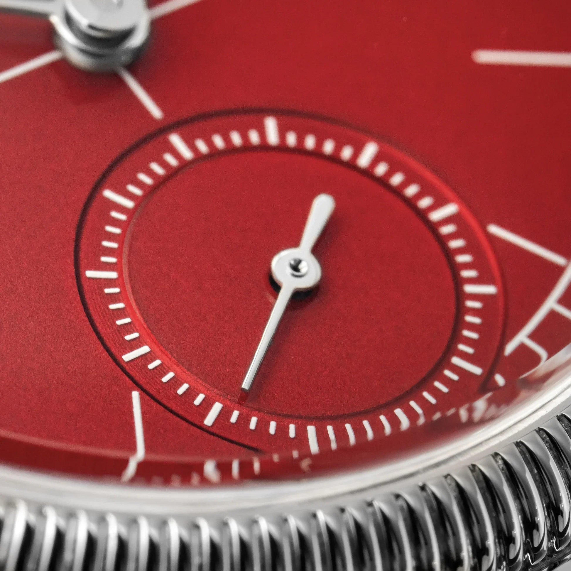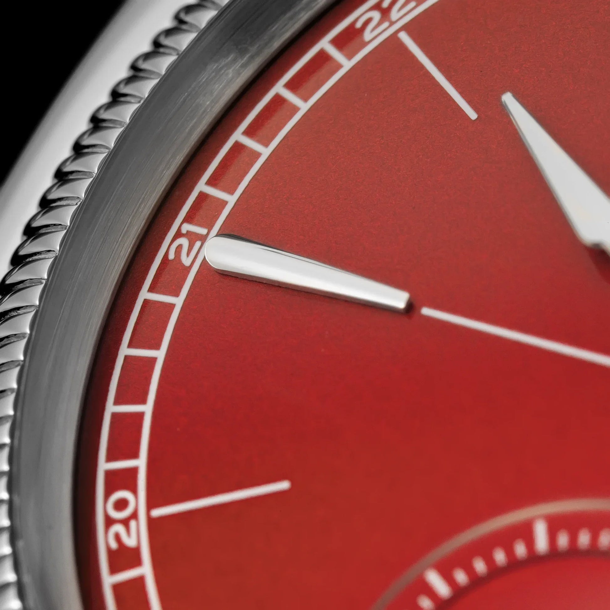 Dial: enamel burgundy red/young sand silvery white